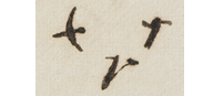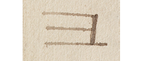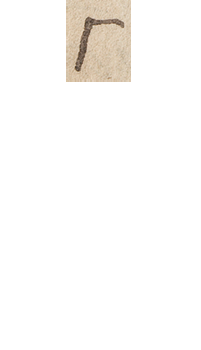 Za Ki=o<a>n hi<a>sh, <or> chal sidon <a> his<a>h. | This character is in the fiftth degree, independent and abitrary. It may be preseved in the fifth degree while it stands independent and arbitrary: That is, without a straight mark | inserted above or below it. By inserting a straight mark over it thus, (2) it increases its signification five degrees: by inserting two straight lines, thus: (3) its signification is increased five times more. By inserting three straight lines, thus (4) its signification is again increased five times more than the last. By counting the numbers of st[r]aight lines and preseving them, or considering them as qualifying adjectives we have the degrees of comparison There are five connecting parts of speech in the above character, called Za-ki on hish These five connecting parts of speech, for verbs, participles— prepositions, conjuntions, and adverbs. In Translation Translating this chara[c]ter, this subject must be continued until there are as many of these connecting parts of speech used as there are connections or connecting parts found in the character. But whinever the character is found with one horizontal line, as at (2) the subject must be continued until twice <five times> the number of connecting parts of speech are used; or, the full sense of the writer is not conveyed. When two horizontal lines occur, the number of conne[c]ting parts of speech are continued five times furthr— or five degrees. And when three horizontal lines are found, the number of connections are to be increased five time further. The character alone has 5 parts of speech: increase by one straight line thus 5x5 is 25 by 2 horizontal lines thus 25 x 5 = 125; and by 3 horizontal lines thus:— 125 x 5 = 625 When this character has a horizontal line under it it reduces it into the fourth degree, consequently it has but four connecting parts of speech. When it has two horizontal lines, it is reduced into the third degree and has but three connecting parts of speech, and when it has three horizontal lines, it is reduced into the second degree and has but two connective parts of speech. | |