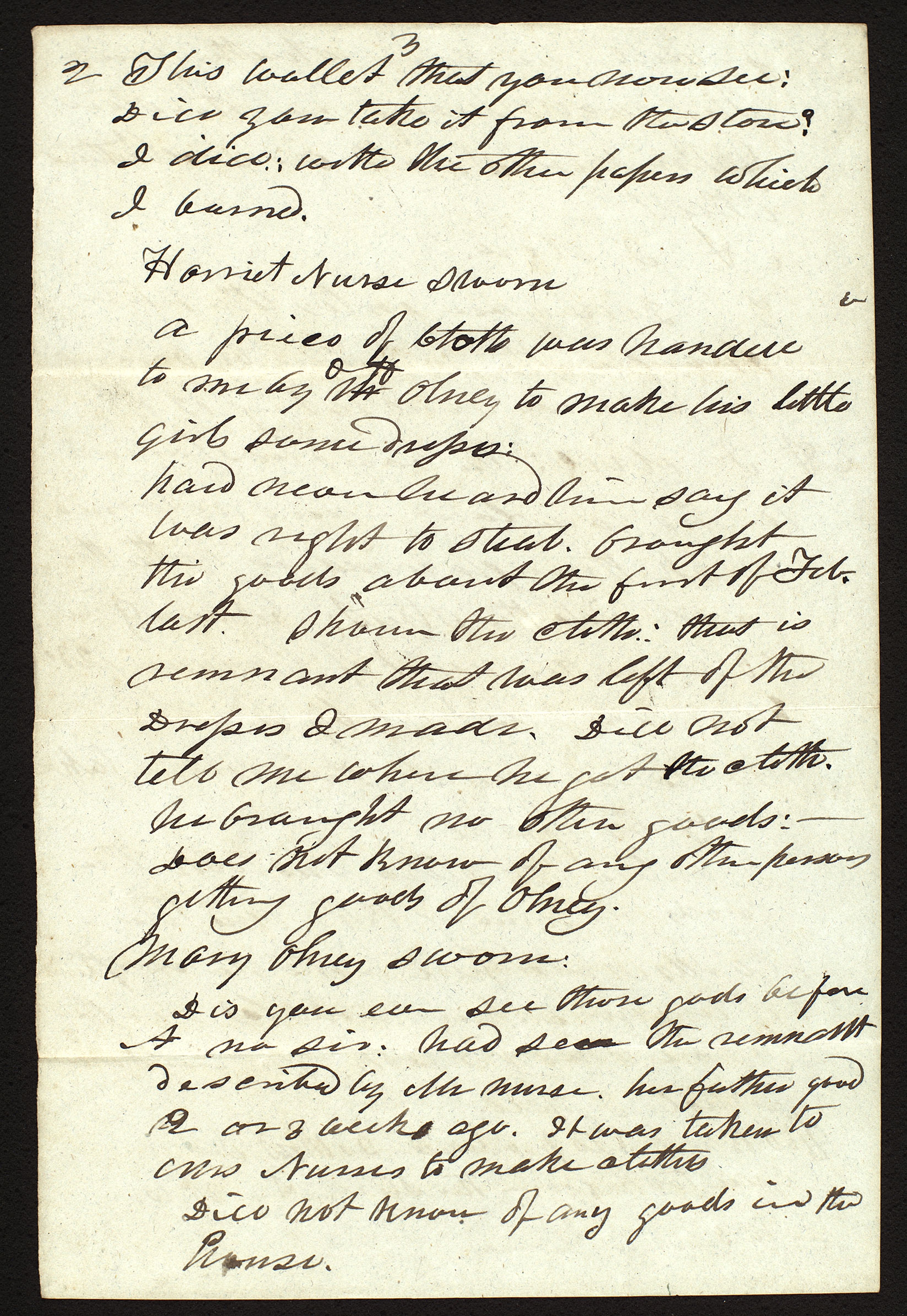 A no sir: had seen the remnant described by Mr[s] Nurse. her good 2 or 3 weeks ago. It was taken to Mrs Nurses to make clothes. Did not know of any goods in the house. [p. 3]