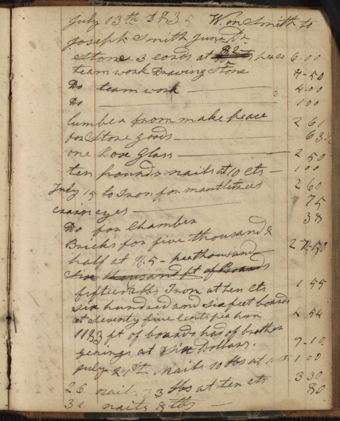 JS, Account with , [, Geauga Co., OH], 13–31 July 1835; John Smith, Daybook, [9]; handwriting of ; John Smith Papers, CHL.