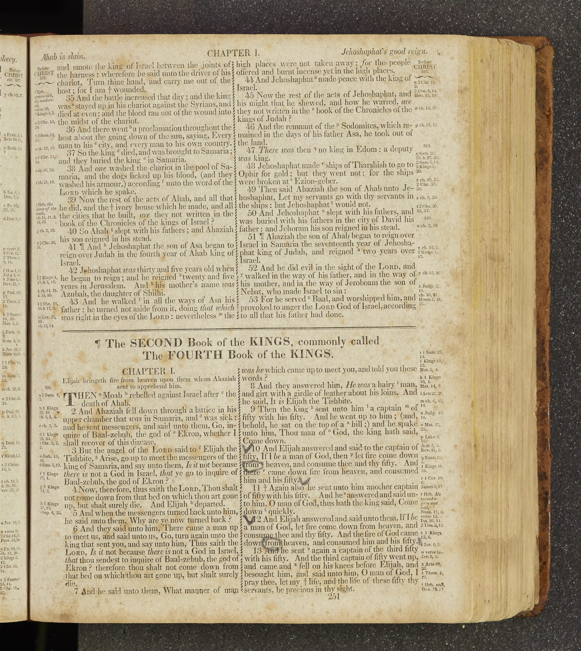 The Holy Bible, Containing the Old and New Testaments: Together with the Apocrypha: Translated Out of the Original Tongues, and With the Former Translations Diligently Compared and Revised. With Caine’s Marginal Notes and References, to Which are Added, an Index: an Alphabetical Table of All the Names in the Old and New Testaments, With their Significations; Tables of Scripture Weights, Measures, and Coins, &c. Cooperstown, NY: H. & E. Phinney, 1828. The copy presented here was used by JS in his Bible Revision project and is now held at the Church History Library in Salt Lake City.