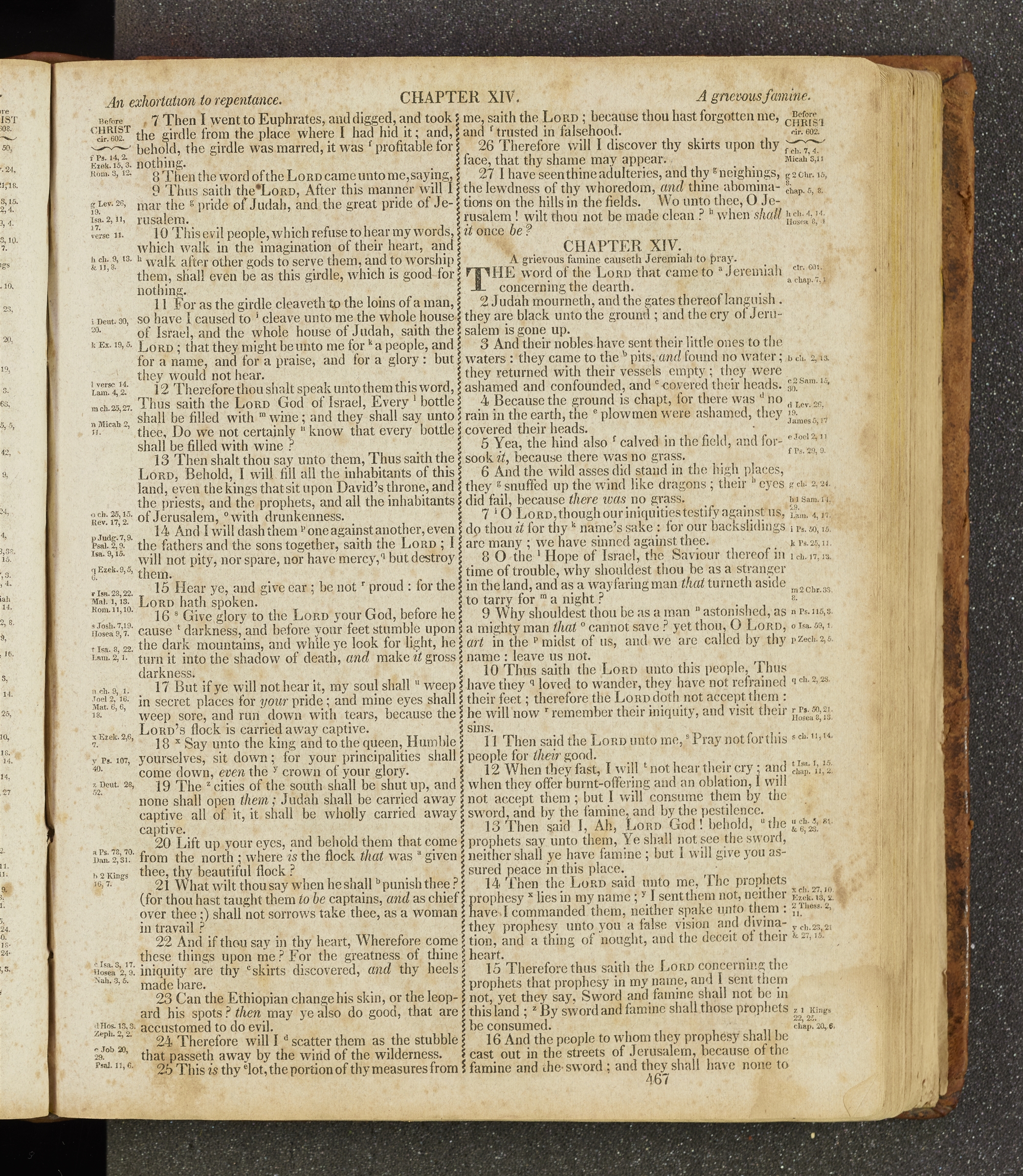 The Holy Bible, Containing the Old and New Testaments: Together with the Apocrypha: Translated Out of the Original Tongues, and With the Former Translations Diligently Compared and Revised. With Caine’s Marginal Notes and References, to Which are Added, an Index: an Alphabetical Table of All the Names in the Old and New Testaments, With their Significations; Tables of Scripture Weights, Measures, and Coins, &c. Cooperstown, NY: H. & E. Phinney, 1828. The copy presented here was used by JS in his Bible Revision project and is now held at the Church History Library in Salt Lake City.