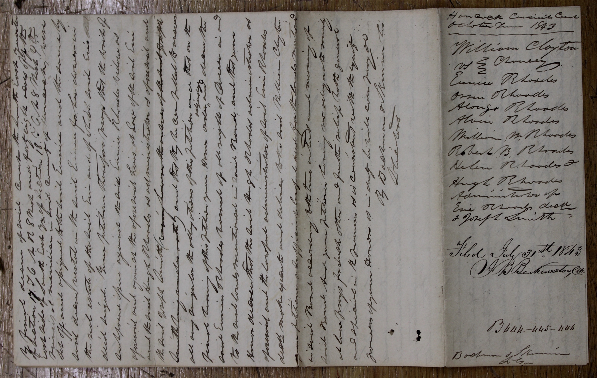 Bill in Chancery, circa 31 July 1843 [Clayton v. E. W. Rhodes et al.]