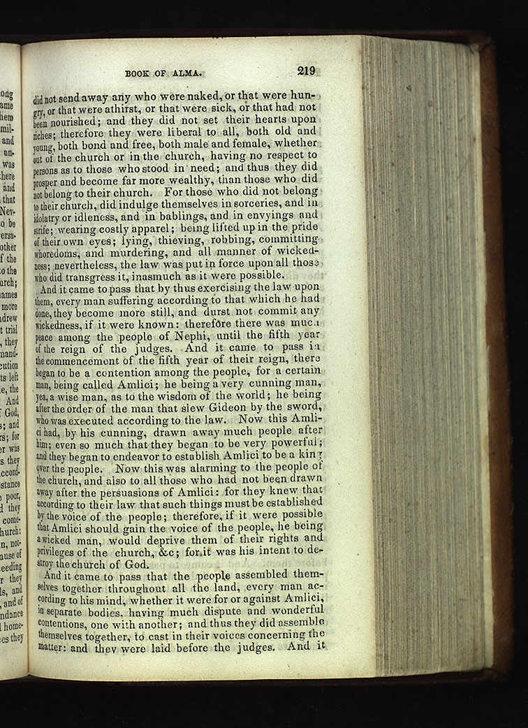 The Book of Mormon: An Account Written by the Hand of Mormon, upon Plates Taken from the Plates of Nephi. Nauvoo, IL: Robinson and Smith; stereotyped by Shepard and Stearns, 1840. iii–vi, 7–571 pp., plus two additional pp. The copy used herein is held at CHL.