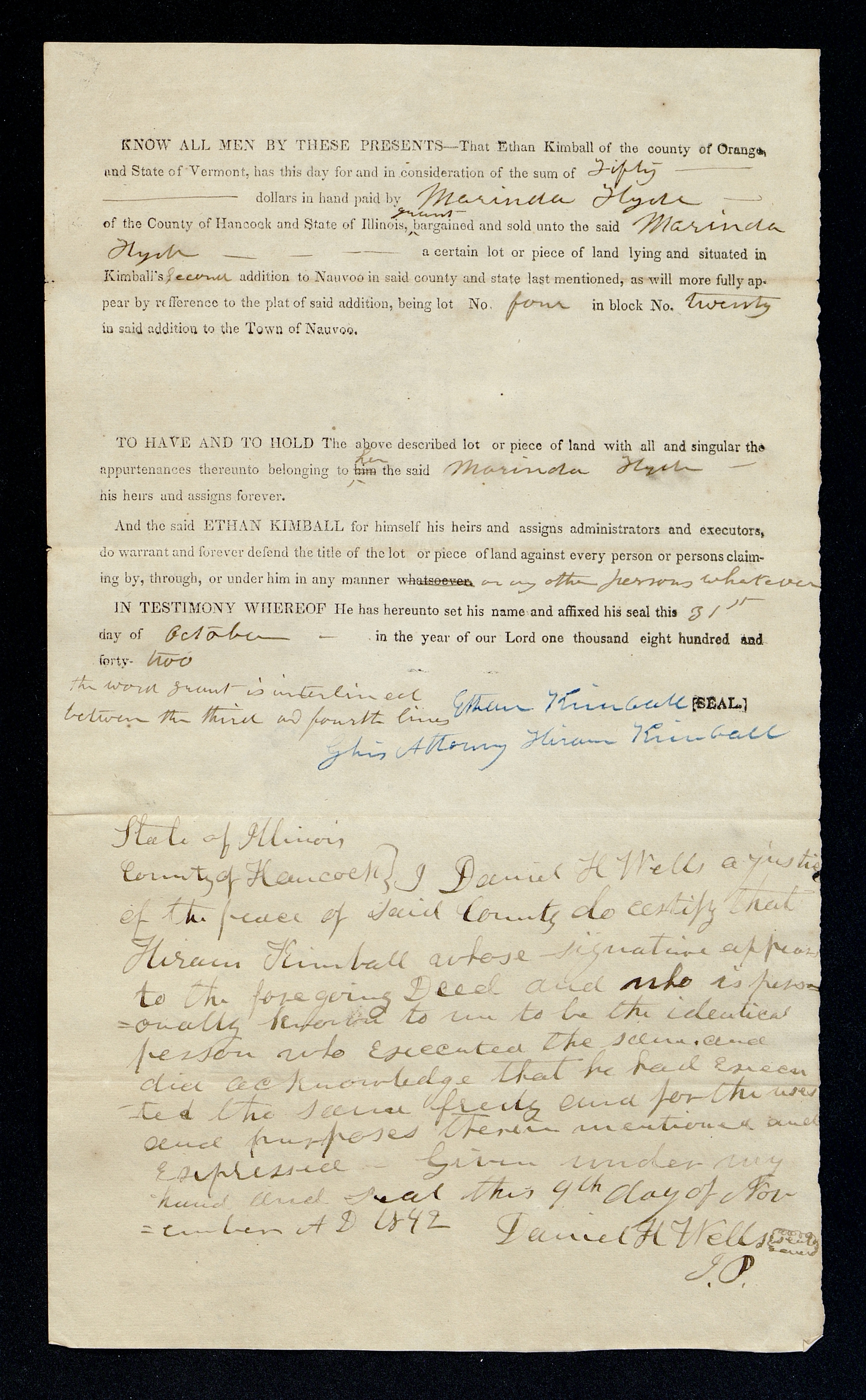 See Historical Introduction to Deed from Orson and Marinda Nancy Johnson Hyde, 10 Feb. 1843.