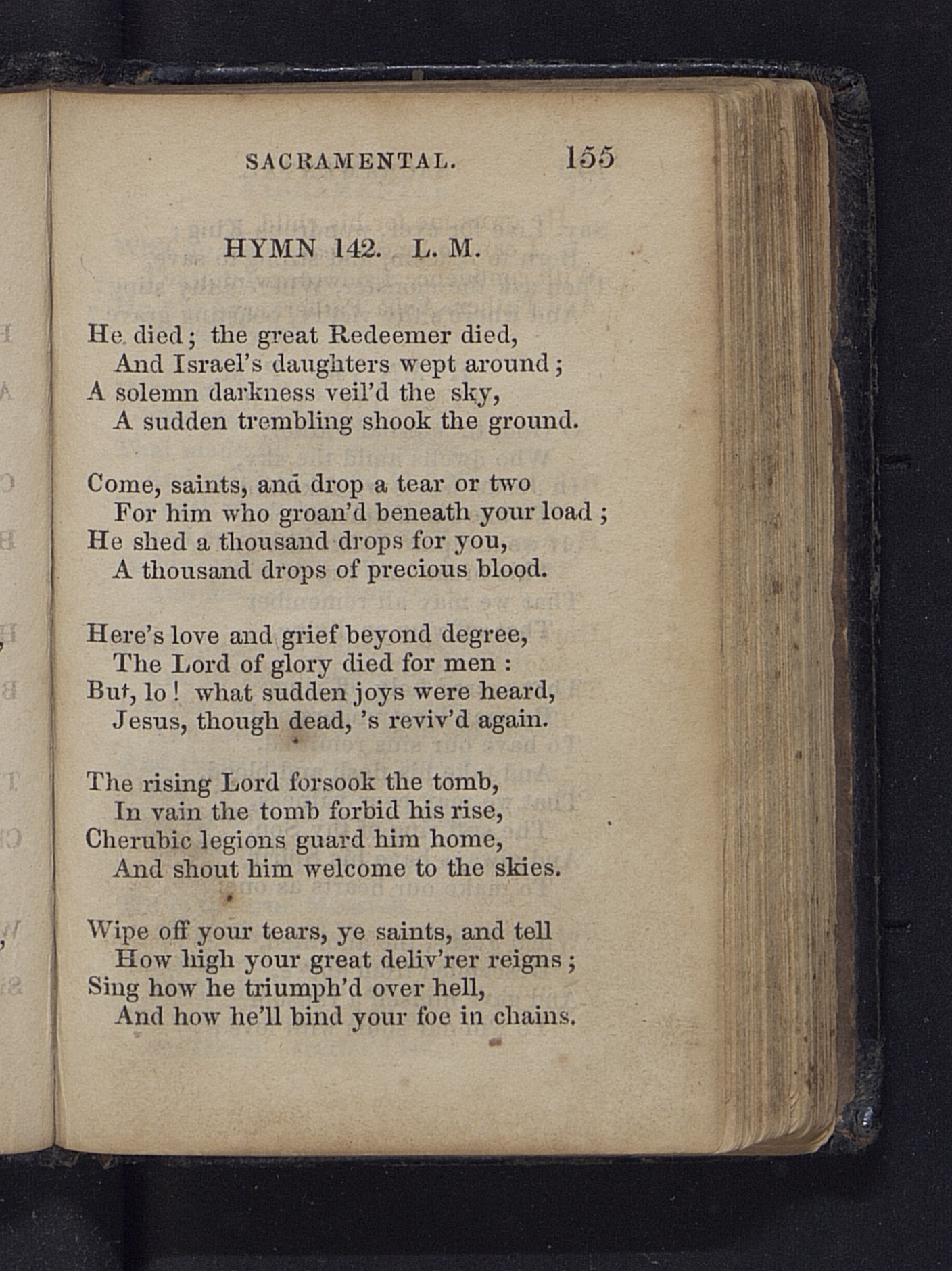 , , and , comps., A Collection of Sacred Hymns for the Church of Jesus Christ of Latter Day Saints, in Europe Manchester, England: W. R. Thomas, 1840, [1]–336. The copy used herein is held at CHL. Includes archival markings and redactions.