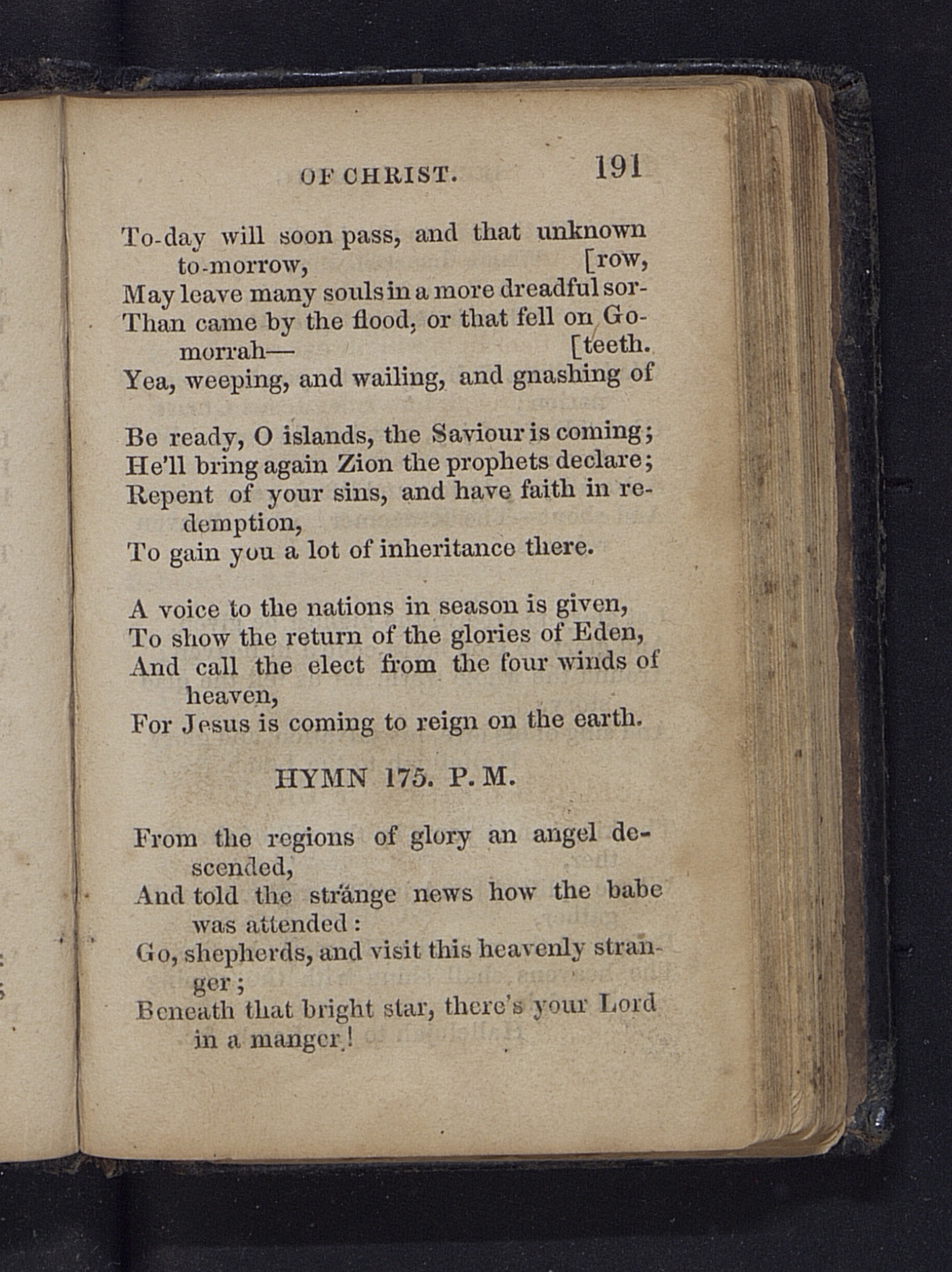 , , and , comps., A Collection of Sacred Hymns for the Church of Jesus Christ of Latter Day Saints, in Europe Manchester, England: W. R. Thomas, 1840, [1]–336. The copy used herein is held at CHL. Includes archival markings and redactions.