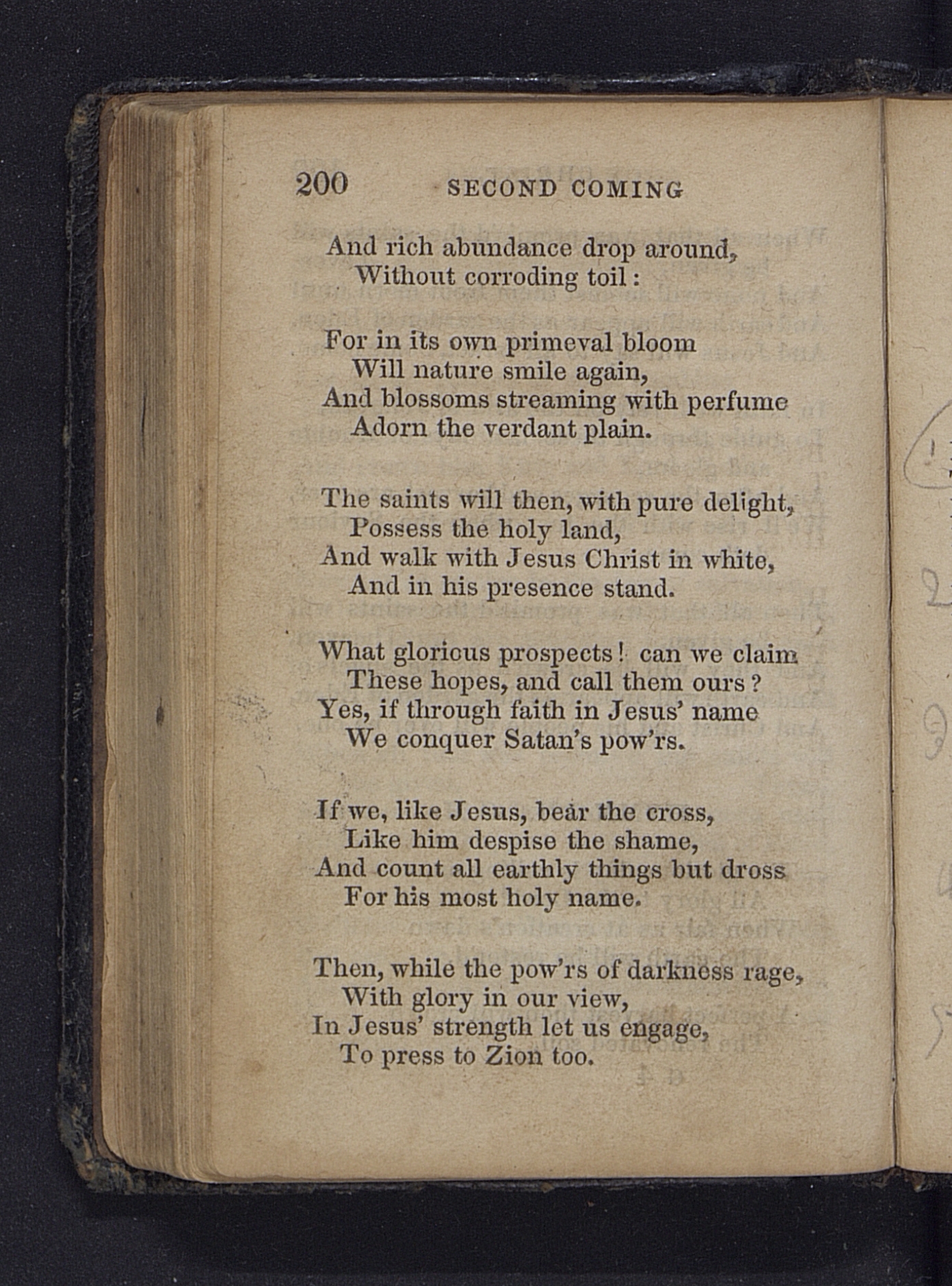 , , and , comps., A Collection of Sacred Hymns for the Church of Jesus Christ of Latter Day Saints, in Europe Manchester, England: W. R. Thomas, 1840, [1]–336. The copy used herein is held at CHL. Includes archival markings and redactions.
