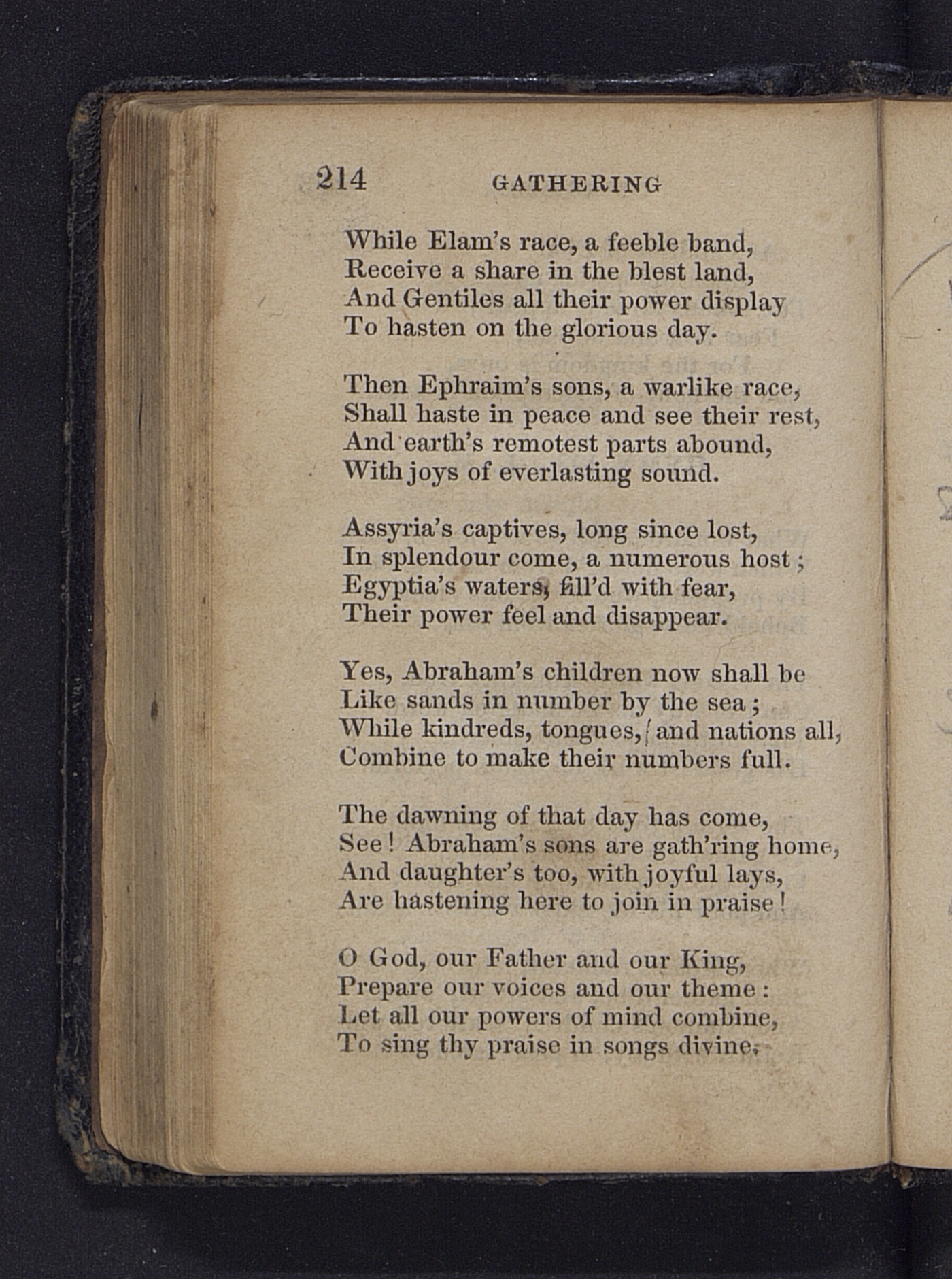 , , and , comps., A Collection of Sacred Hymns for the Church of Jesus Christ of Latter Day Saints, in Europe Manchester, England: W. R. Thomas, 1840, [1]–336. The copy used herein is held at CHL. Includes archival markings and redactions.