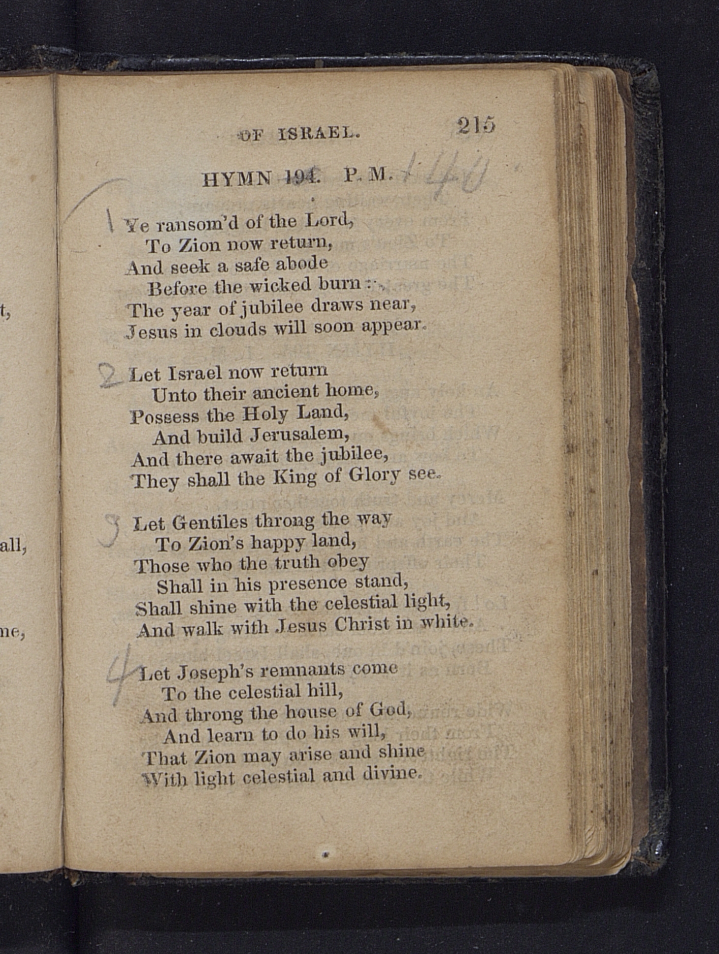 , , and , comps., A Collection of Sacred Hymns for the Church of Jesus Christ of Latter Day Saints, in Europe Manchester, England: W. R. Thomas, 1840, [1]–336. The copy used herein is held at CHL. Includes archival markings and redactions.