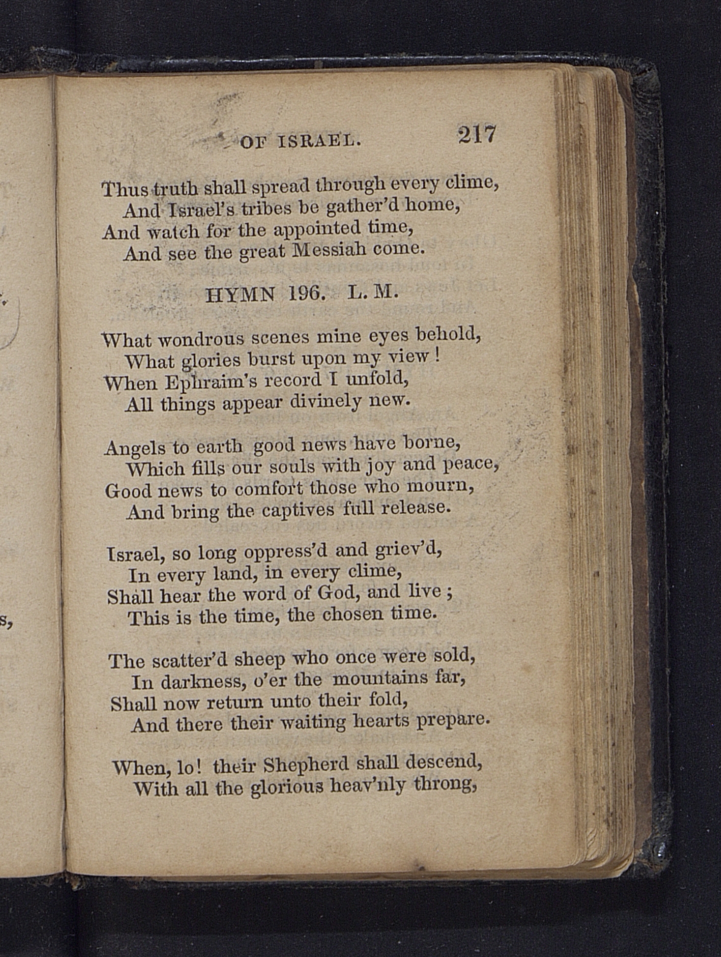 , , and , comps., A Collection of Sacred Hymns for the Church of Jesus Christ of Latter Day Saints, in Europe Manchester, England: W. R. Thomas, 1840, [1]–336. The copy used herein is held at CHL. Includes archival markings and redactions.