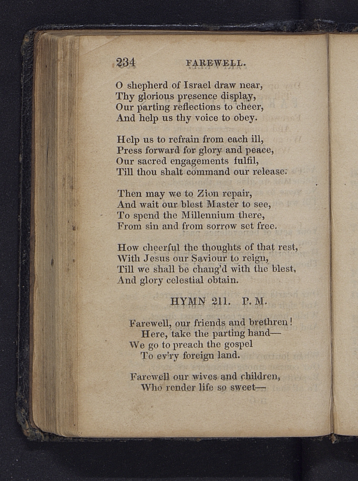 , , and , comps., A Collection of Sacred Hymns for the Church of Jesus Christ of Latter Day Saints, in Europe Manchester, England: W. R. Thomas, 1840, [1]–336. The copy used herein is held at CHL. Includes archival markings and redactions.