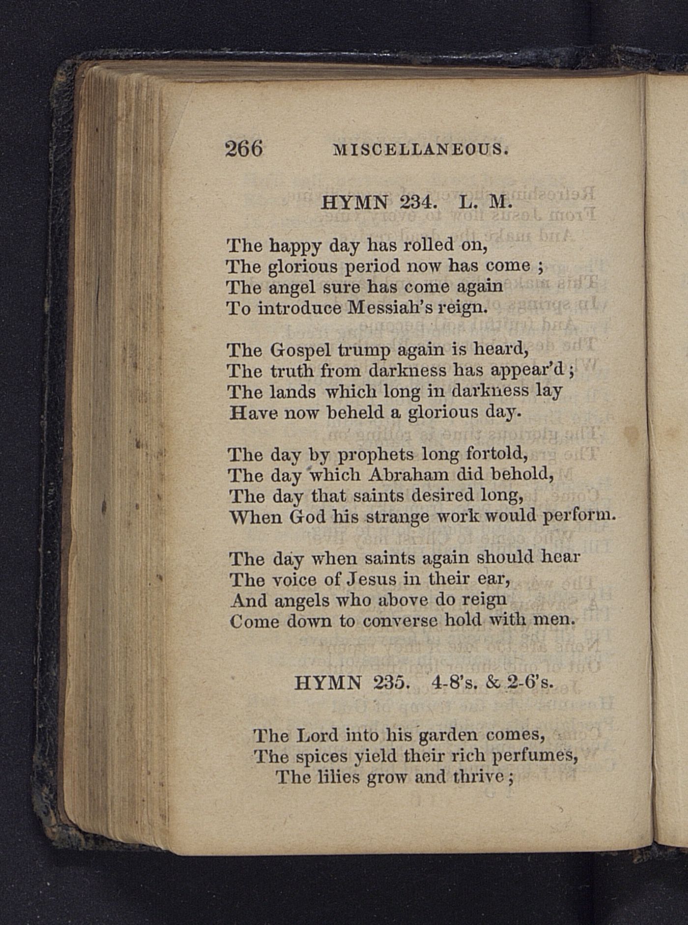 , , and , comps., A Collection of Sacred Hymns for the Church of Jesus Christ of Latter Day Saints, in Europe Manchester, England: W. R. Thomas, 1840, [1]–336. The copy used herein is held at CHL. Includes archival markings and redactions.