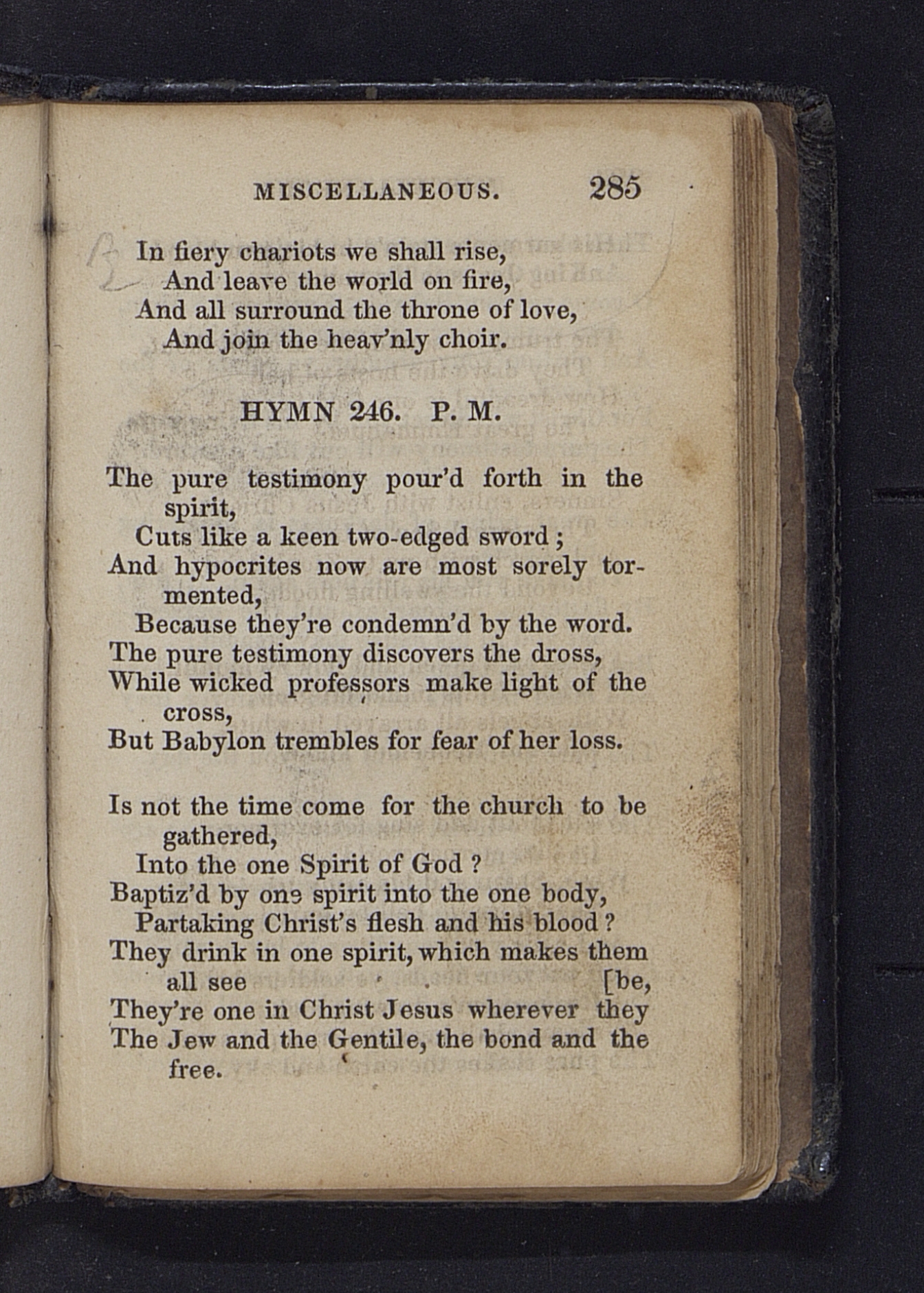 , , and , comps., A Collection of Sacred Hymns for the Church of Jesus Christ of Latter Day Saints, in Europe Manchester, England: W. R. Thomas, 1840, [1]–336. The copy used herein is held at CHL. Includes archival markings and redactions.