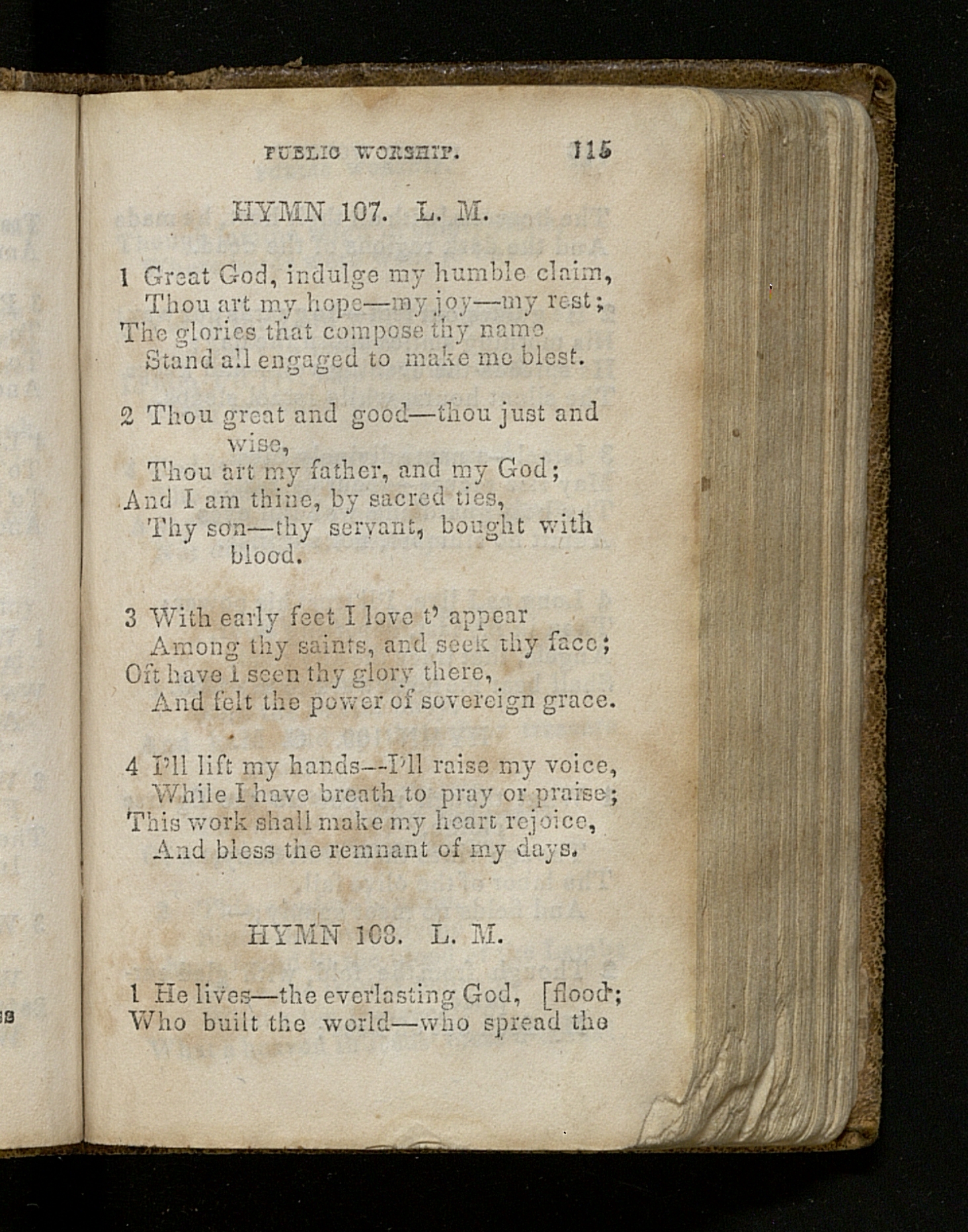 , comp., A Collection of Sacred Hymns for the Church of Jesus Christ of Latter Day Saints, Nauvoo, IL: E. Robinson, 1841, [i]–iv, 5–351. The copy used herein is held at CHL. Includes archival markings.