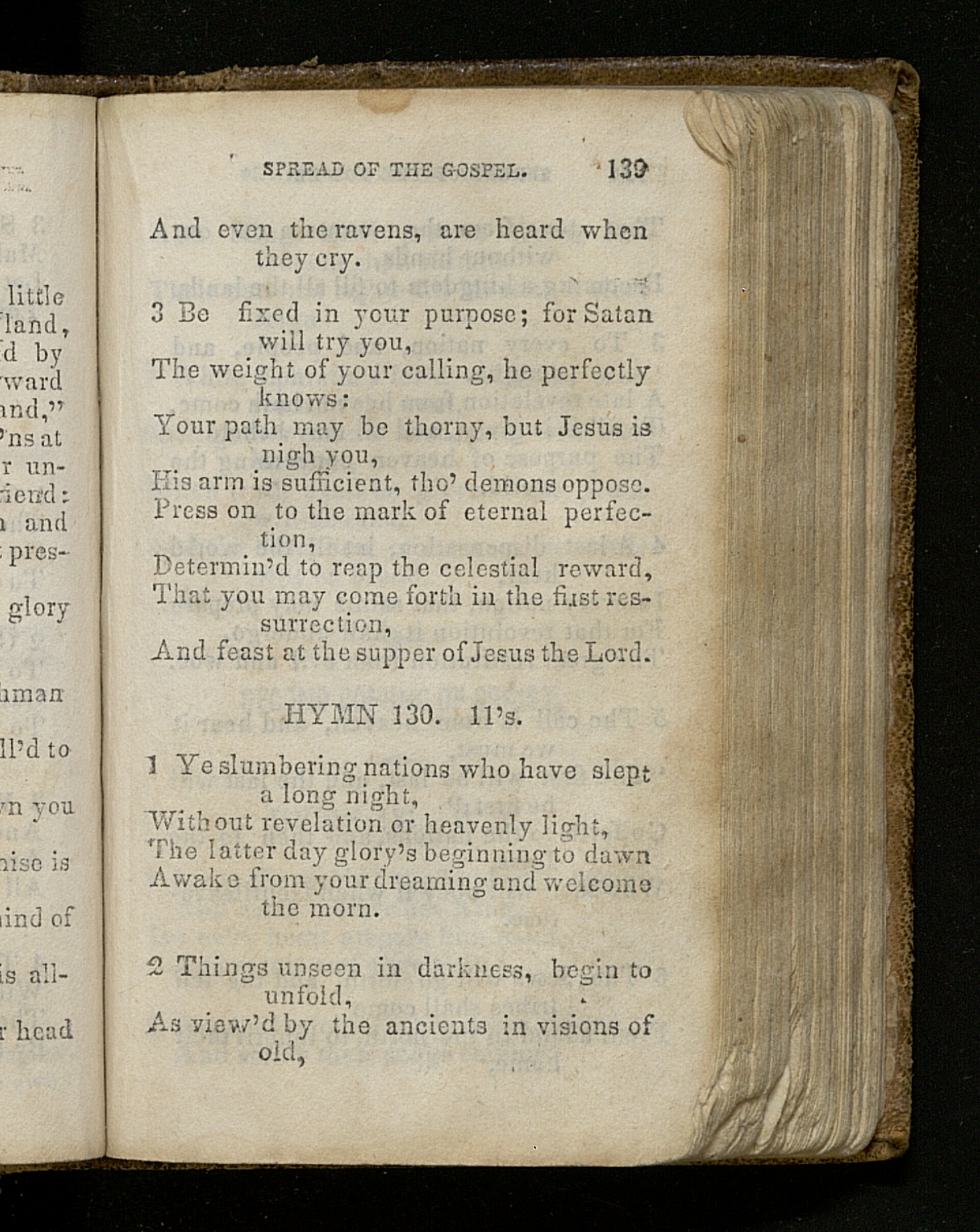 , comp., A Collection of Sacred Hymns for the Church of Jesus Christ of Latter Day Saints, Nauvoo, IL: E. Robinson, 1841, [i]–iv, 5–351. The copy used herein is held at CHL. Includes archival markings.
