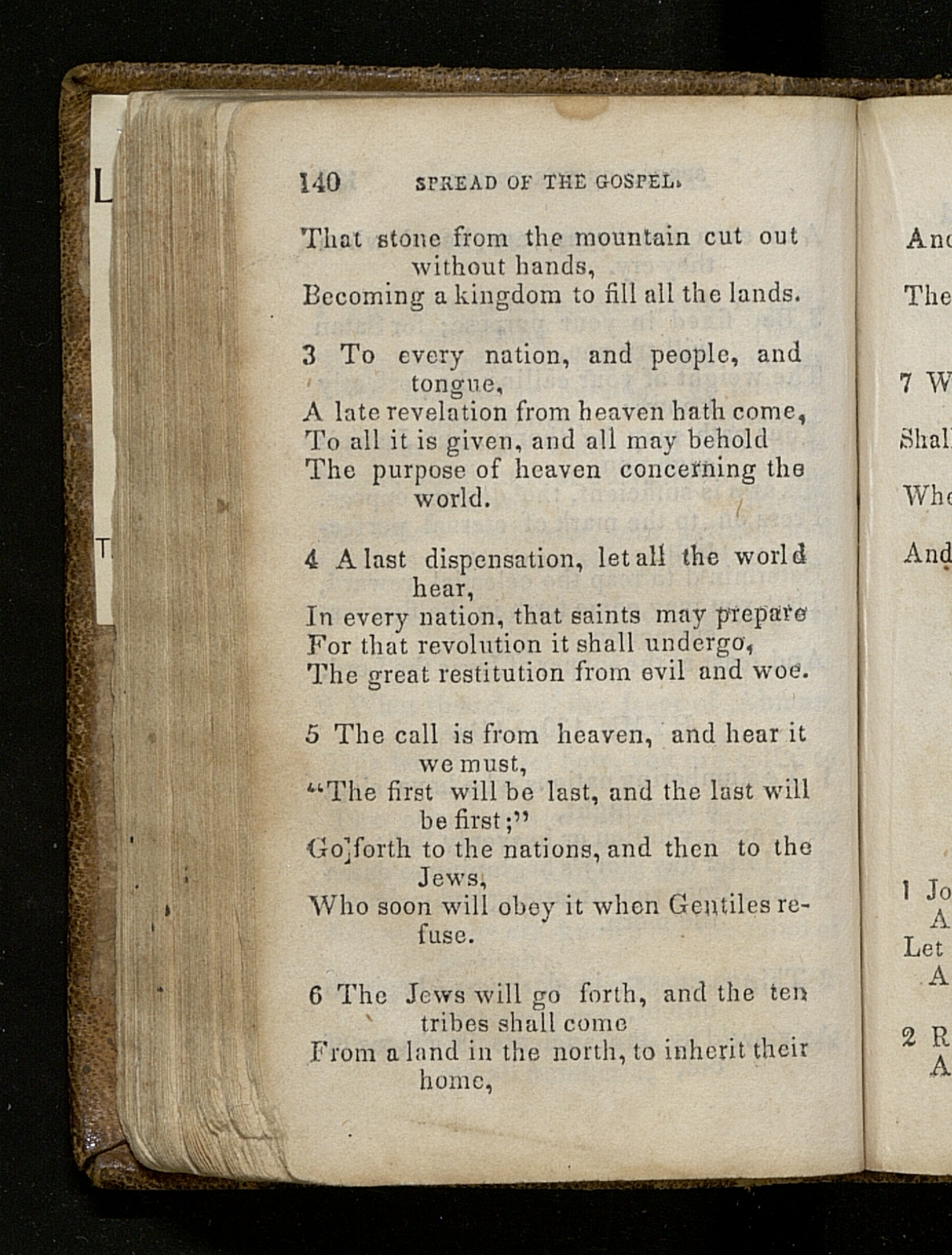 , comp., A Collection of Sacred Hymns for the Church of Jesus Christ of Latter Day Saints, Nauvoo, IL: E. Robinson, 1841, [i]–iv, 5–351. The copy used herein is held at CHL. Includes archival markings.