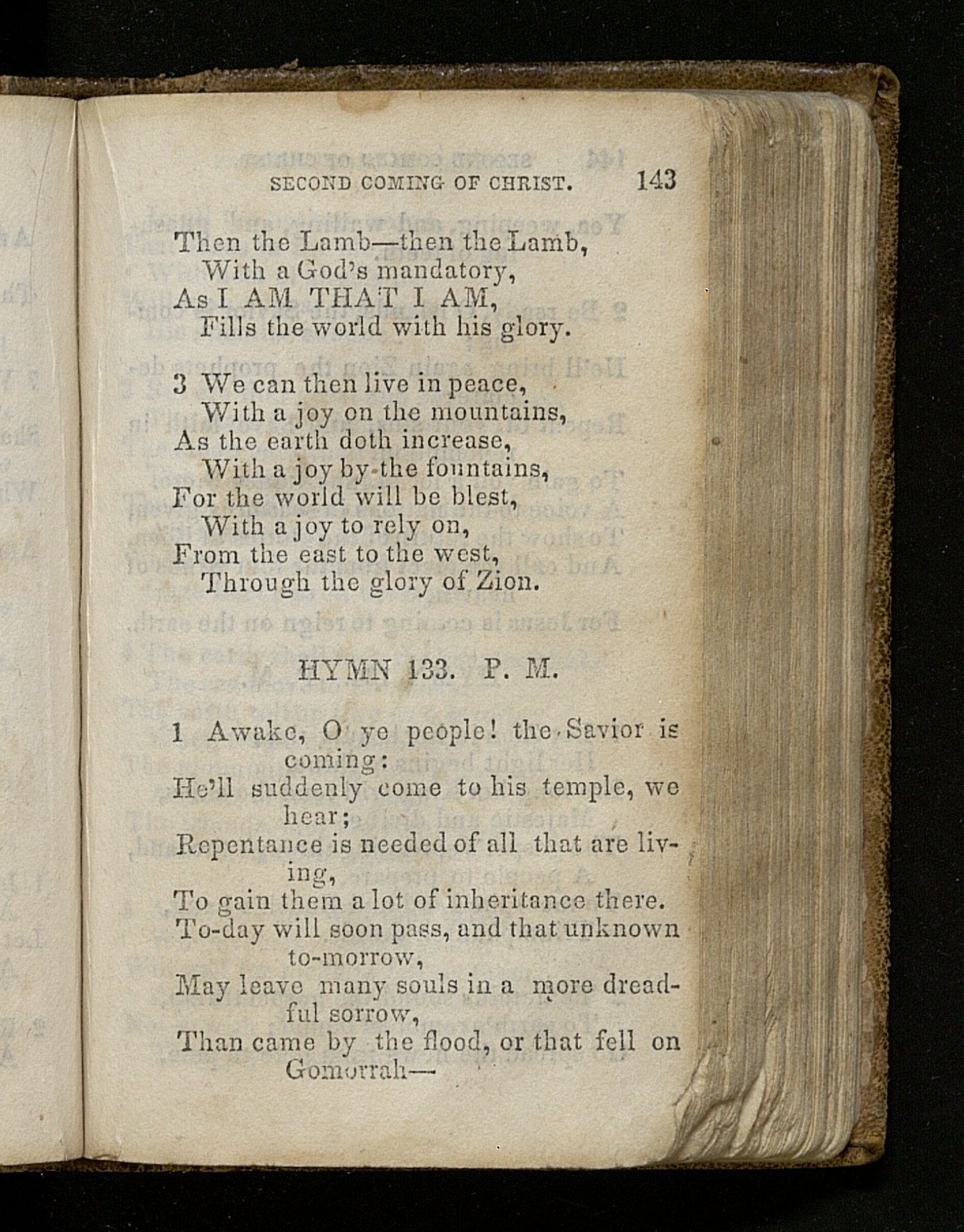 , comp., A Collection of Sacred Hymns for the Church of Jesus Christ of Latter Day Saints, Nauvoo, IL: E. Robinson, 1841, [i]–iv, 5–351. The copy used herein is held at CHL. Includes archival markings.