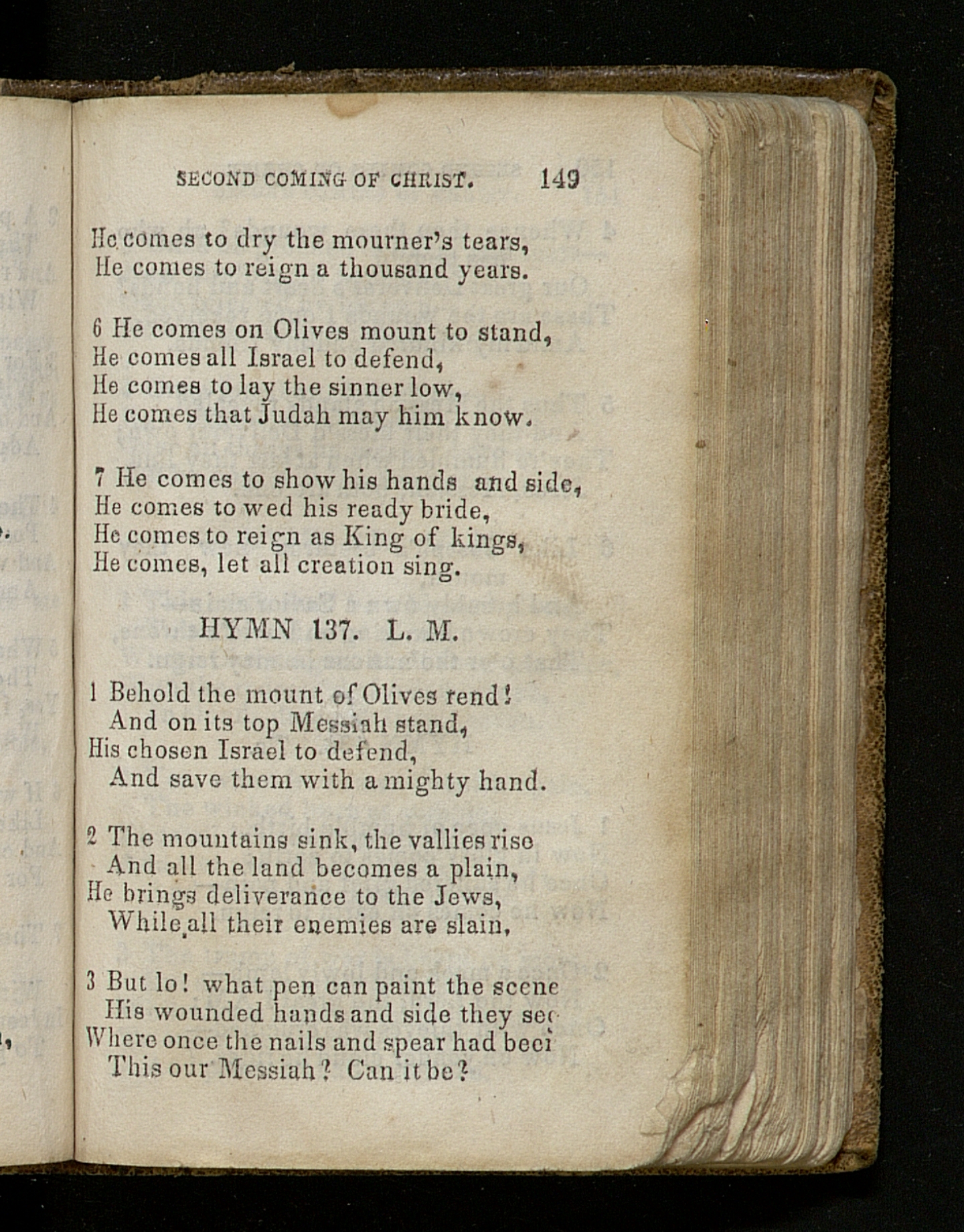 , comp., A Collection of Sacred Hymns for the Church of Jesus Christ of Latter Day Saints, Nauvoo, IL: E. Robinson, 1841, [i]–iv, 5–351. The copy used herein is held at CHL. Includes archival markings.