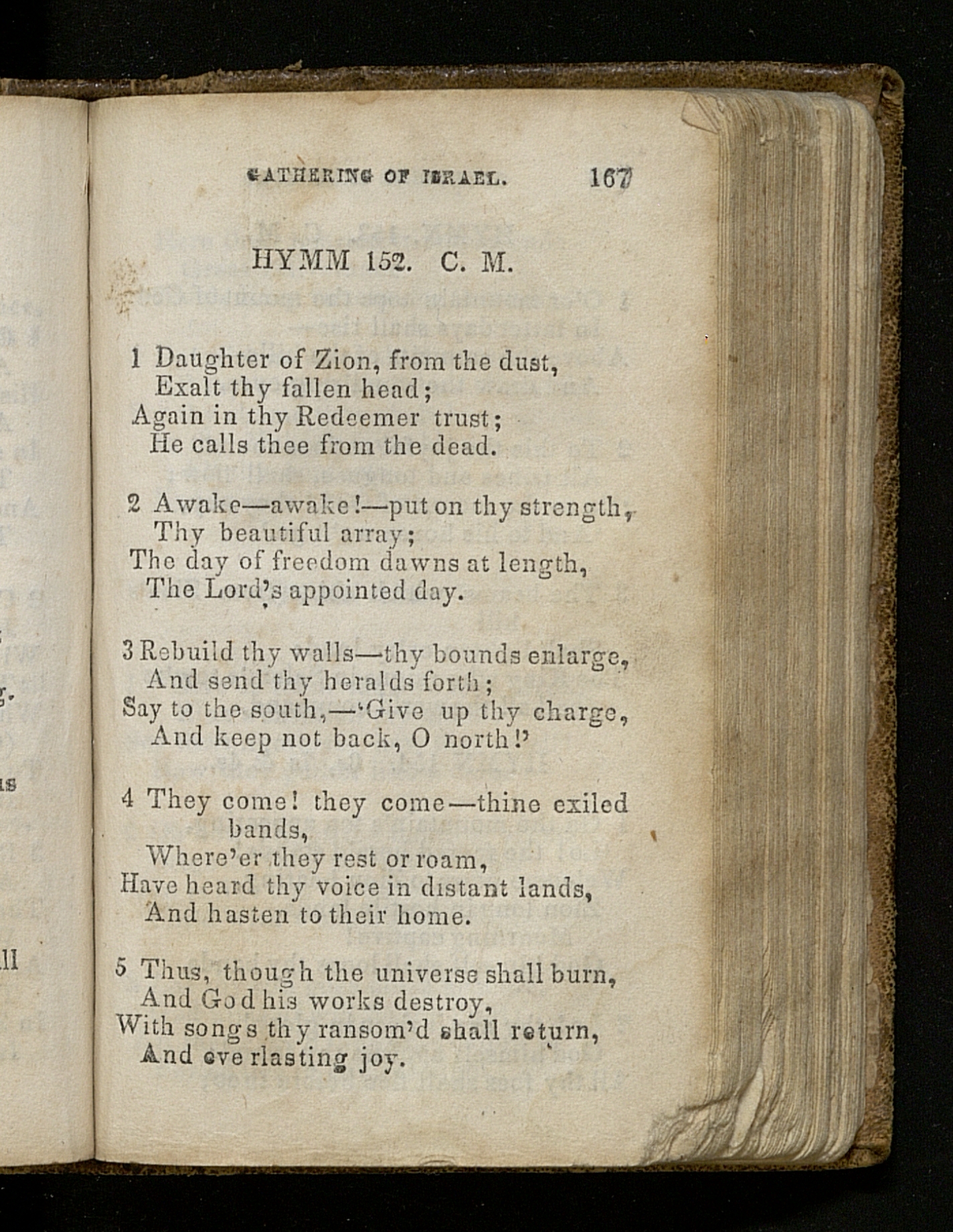 , comp., A Collection of Sacred Hymns for the Church of Jesus Christ of Latter Day Saints, Nauvoo, IL: E. Robinson, 1841, [i]–iv, 5–351. The copy used herein is held at CHL. Includes archival markings.