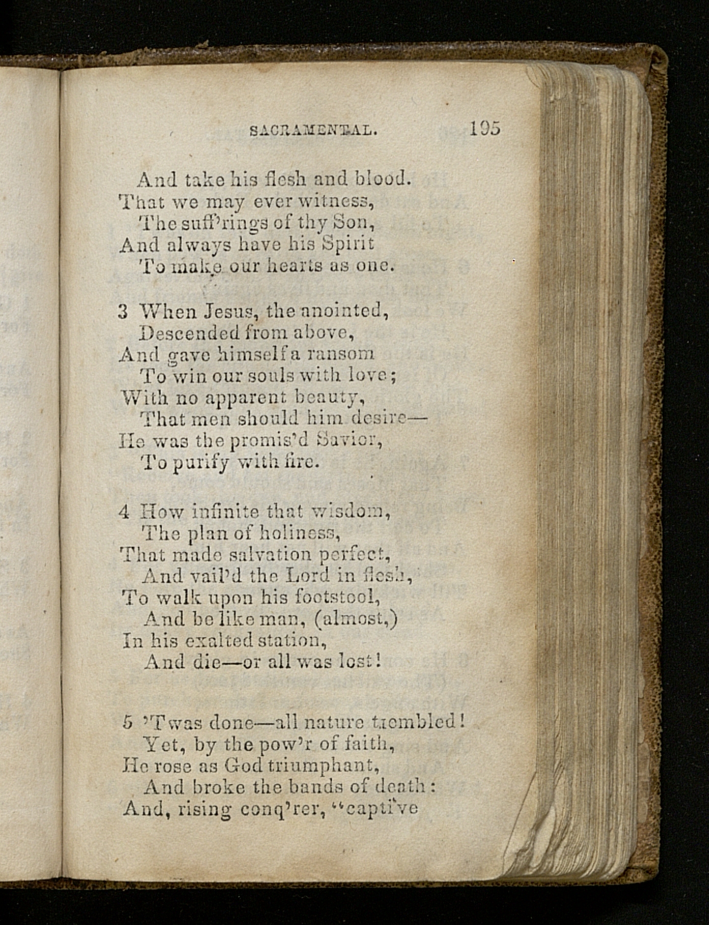 , comp., A Collection of Sacred Hymns for the Church of Jesus Christ of Latter Day Saints, Nauvoo, IL: E. Robinson, 1841, [i]–iv, 5–351. The copy used herein is held at CHL. Includes archival markings.