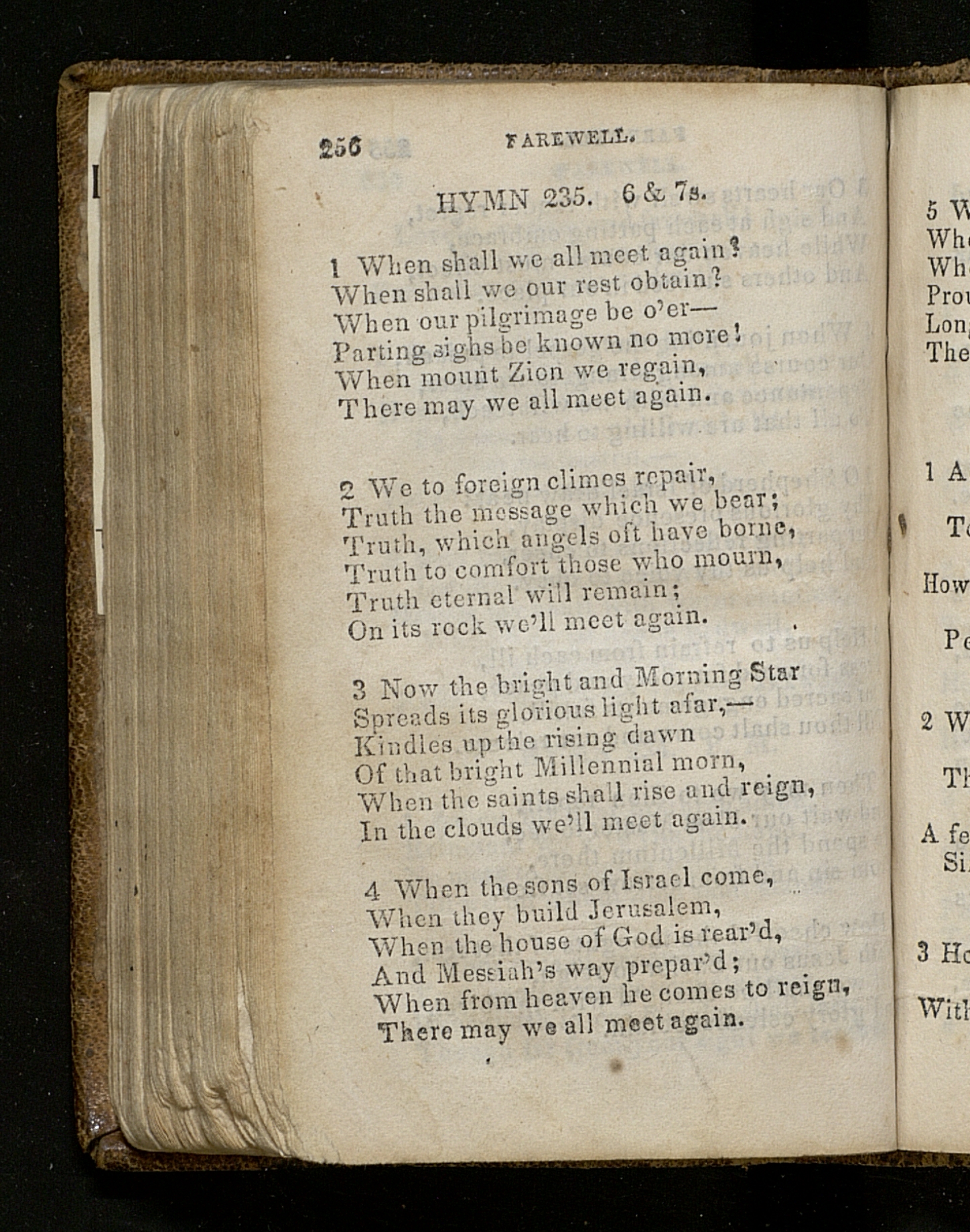 , comp., A Collection of Sacred Hymns for the Church of Jesus Christ of Latter Day Saints, Nauvoo, IL: E. Robinson, 1841, [i]–iv, 5–351. The copy used herein is held at CHL. Includes archival markings.