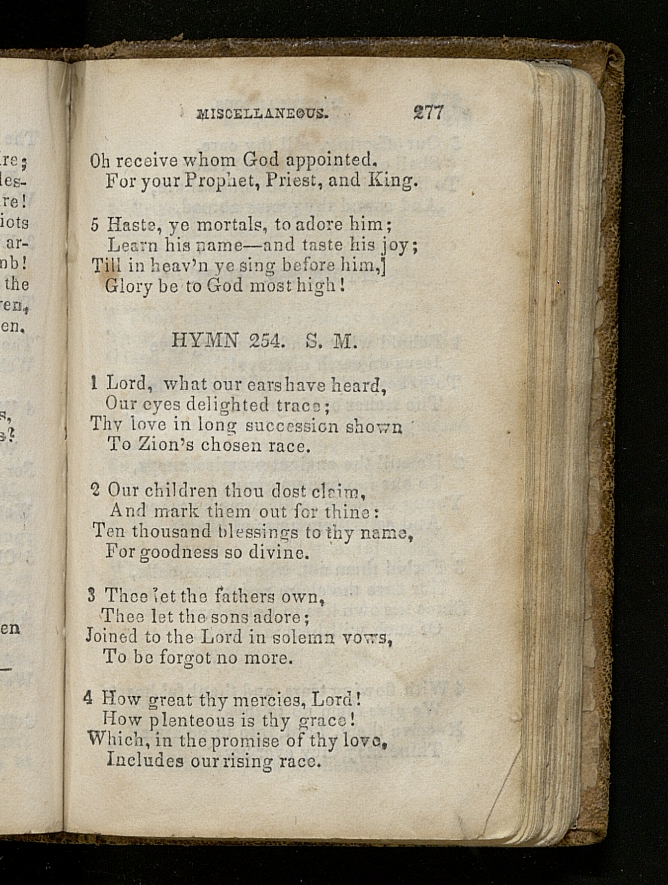 , comp., A Collection of Sacred Hymns for the Church of Jesus Christ of Latter Day Saints, Nauvoo, IL: E. Robinson, 1841, [i]–iv, 5–351. The copy used herein is held at CHL. Includes archival markings.