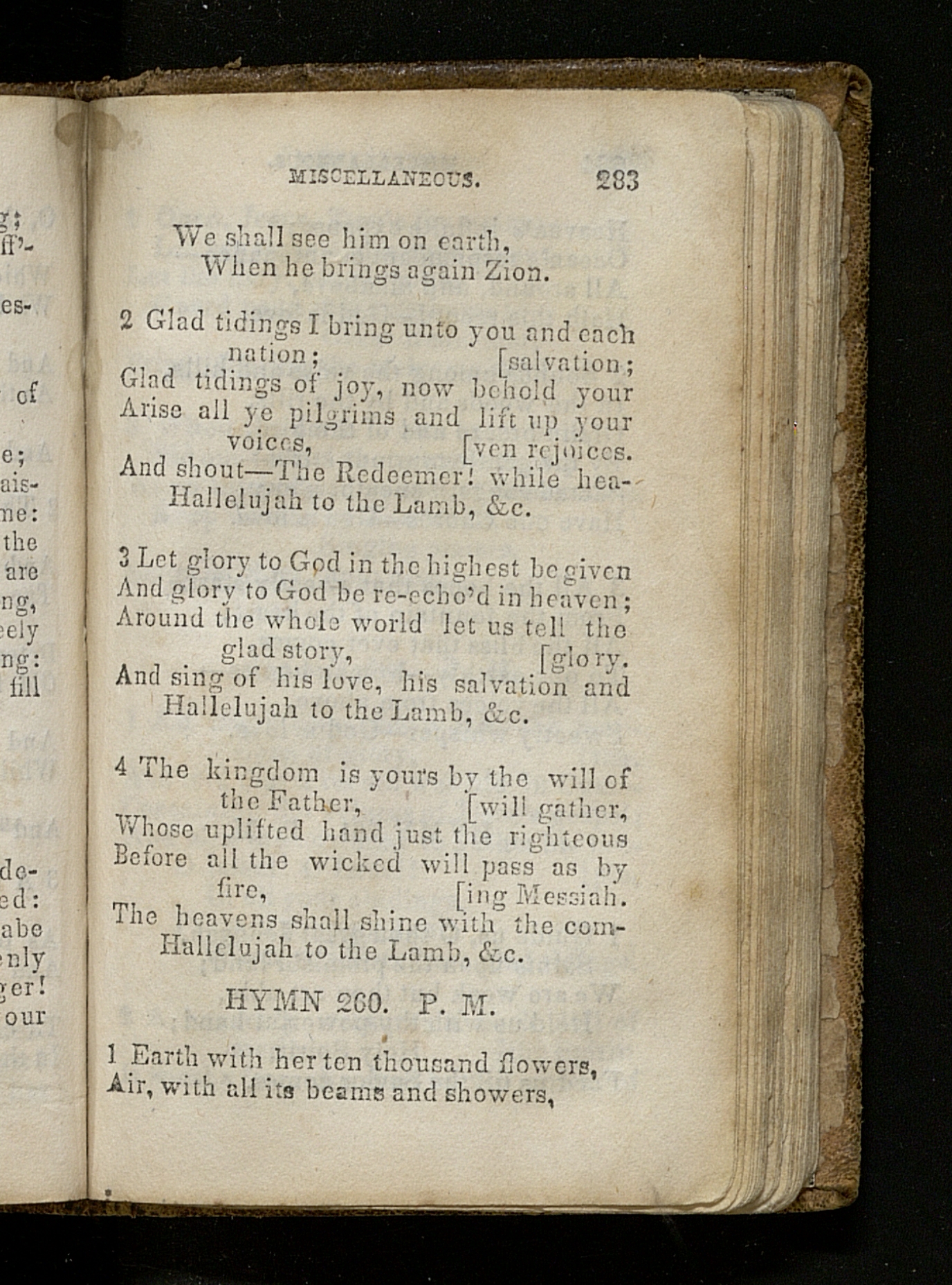 , comp., A Collection of Sacred Hymns for the Church of Jesus Christ of Latter Day Saints, Nauvoo, IL: E. Robinson, 1841, [i]–iv, 5–351. The copy used herein is held at CHL. Includes archival markings.