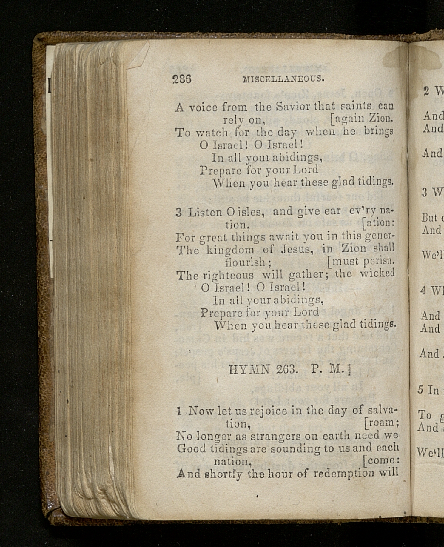 , comp., A Collection of Sacred Hymns for the Church of Jesus Christ of Latter Day Saints, Nauvoo, IL: E. Robinson, 1841, [i]–iv, 5–351. The copy used herein is held at CHL. Includes archival markings.