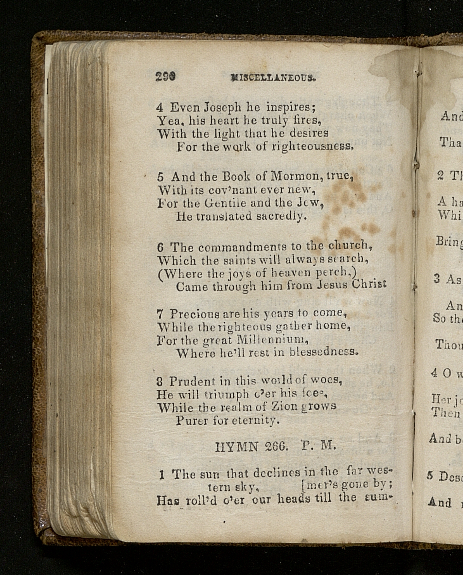 , comp., A Collection of Sacred Hymns for the Church of Jesus Christ of Latter Day Saints, Nauvoo, IL: E. Robinson, 1841, [i]–iv, 5–351. The copy used herein is held at CHL. Includes archival markings.