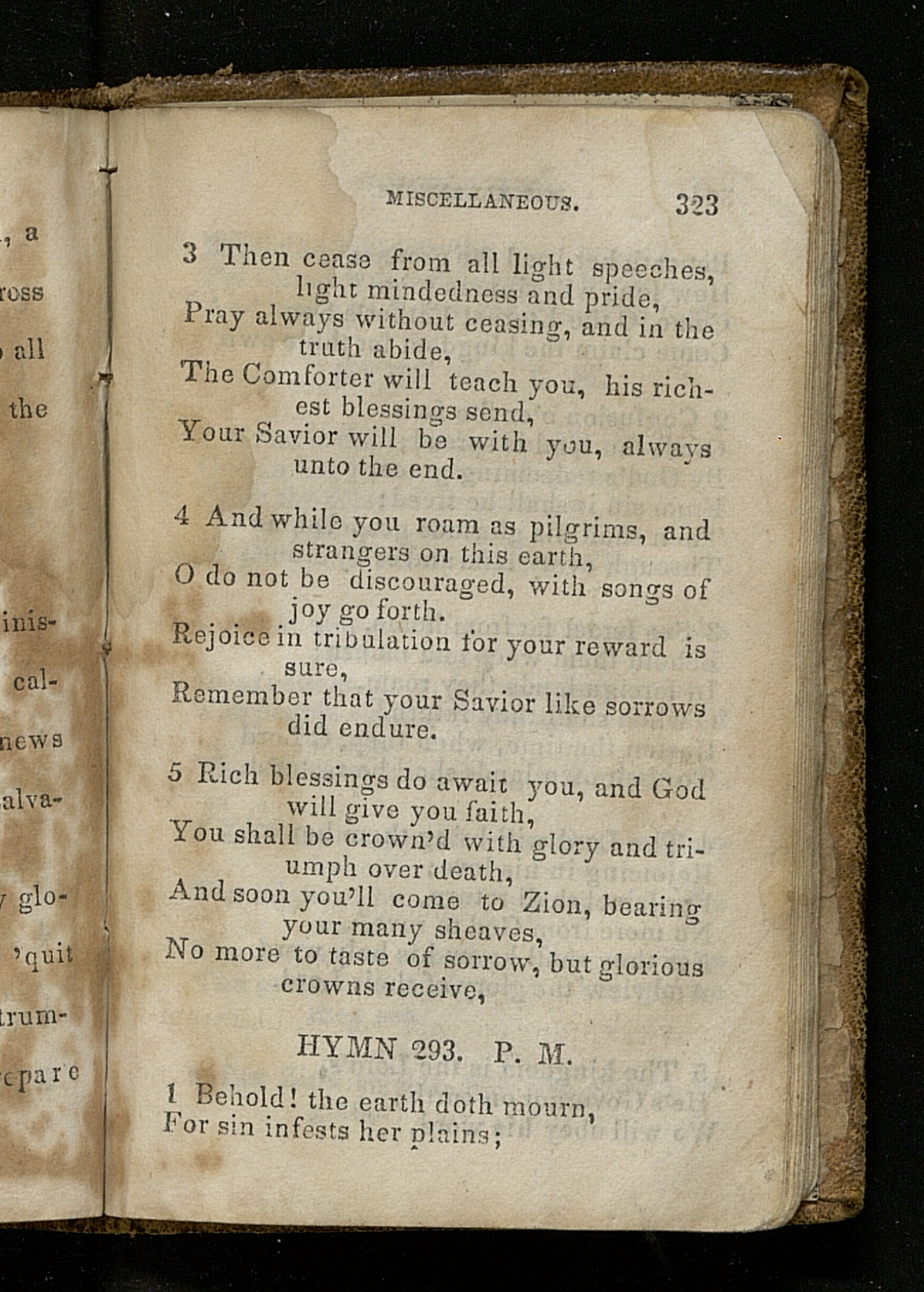 , comp., A Collection of Sacred Hymns for the Church of Jesus Christ of Latter Day Saints, Nauvoo, IL: E. Robinson, 1841, [i]–iv, 5–351. The copy used herein is held at CHL. Includes archival markings.