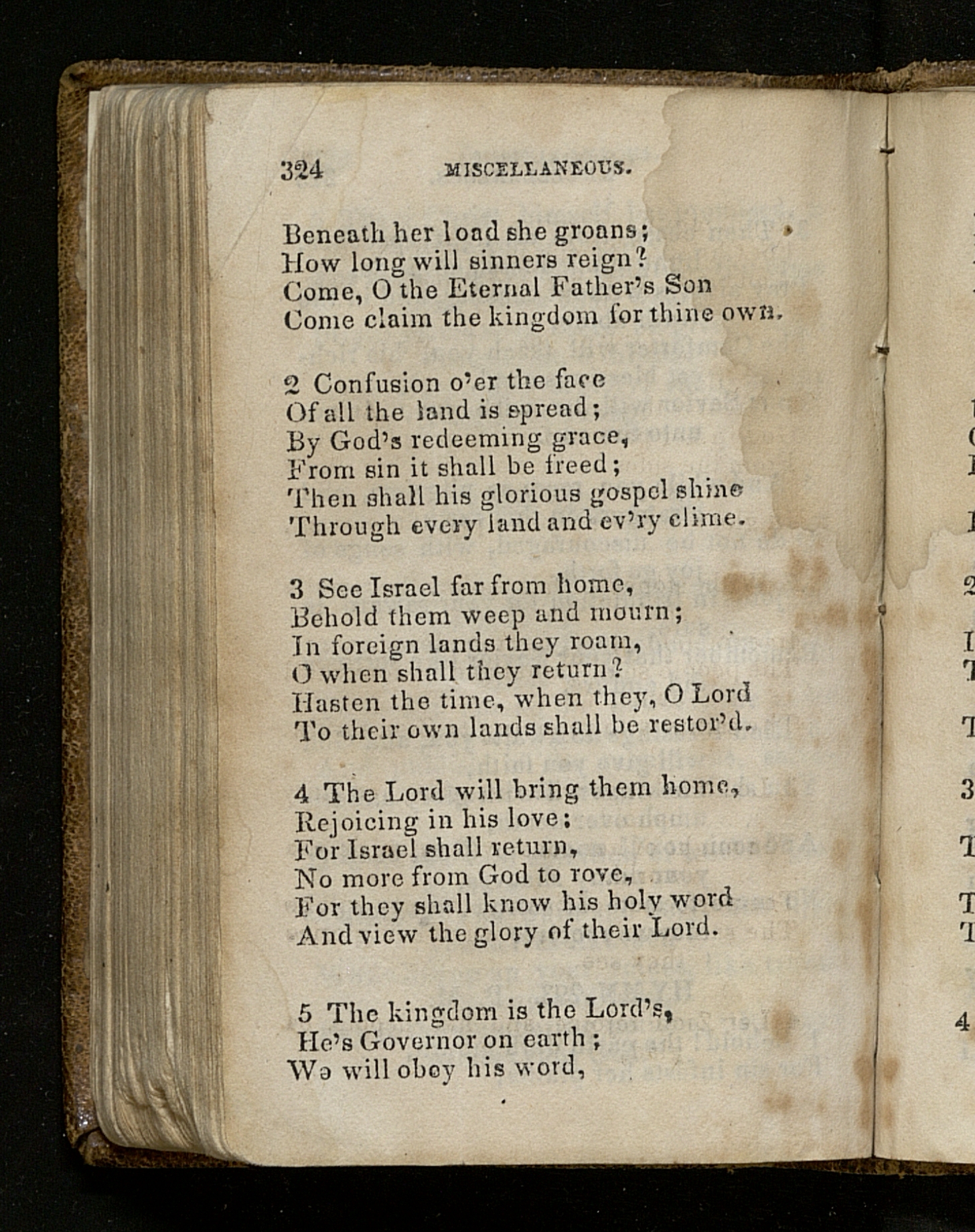 , comp., A Collection of Sacred Hymns for the Church of Jesus Christ of Latter Day Saints, Nauvoo, IL: E. Robinson, 1841, [i]–iv, 5–351. The copy used herein is held at CHL. Includes archival markings.