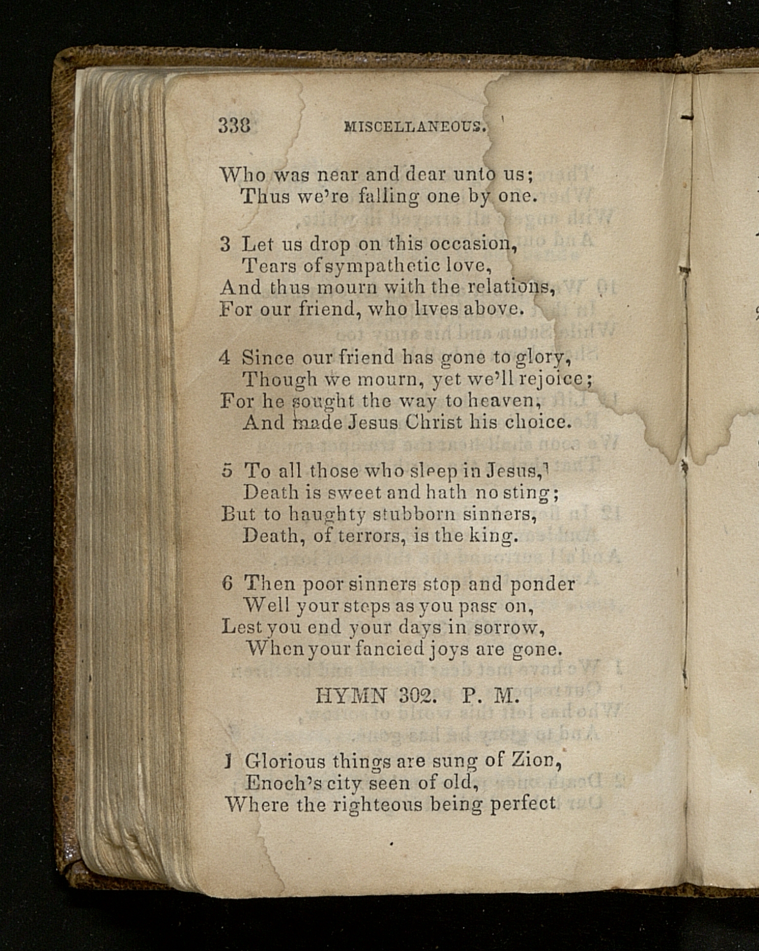 , comp., A Collection of Sacred Hymns for the Church of Jesus Christ of Latter Day Saints, Nauvoo, IL: E. Robinson, 1841, [i]–iv, 5–351. The copy used herein is held at CHL. Includes archival markings.