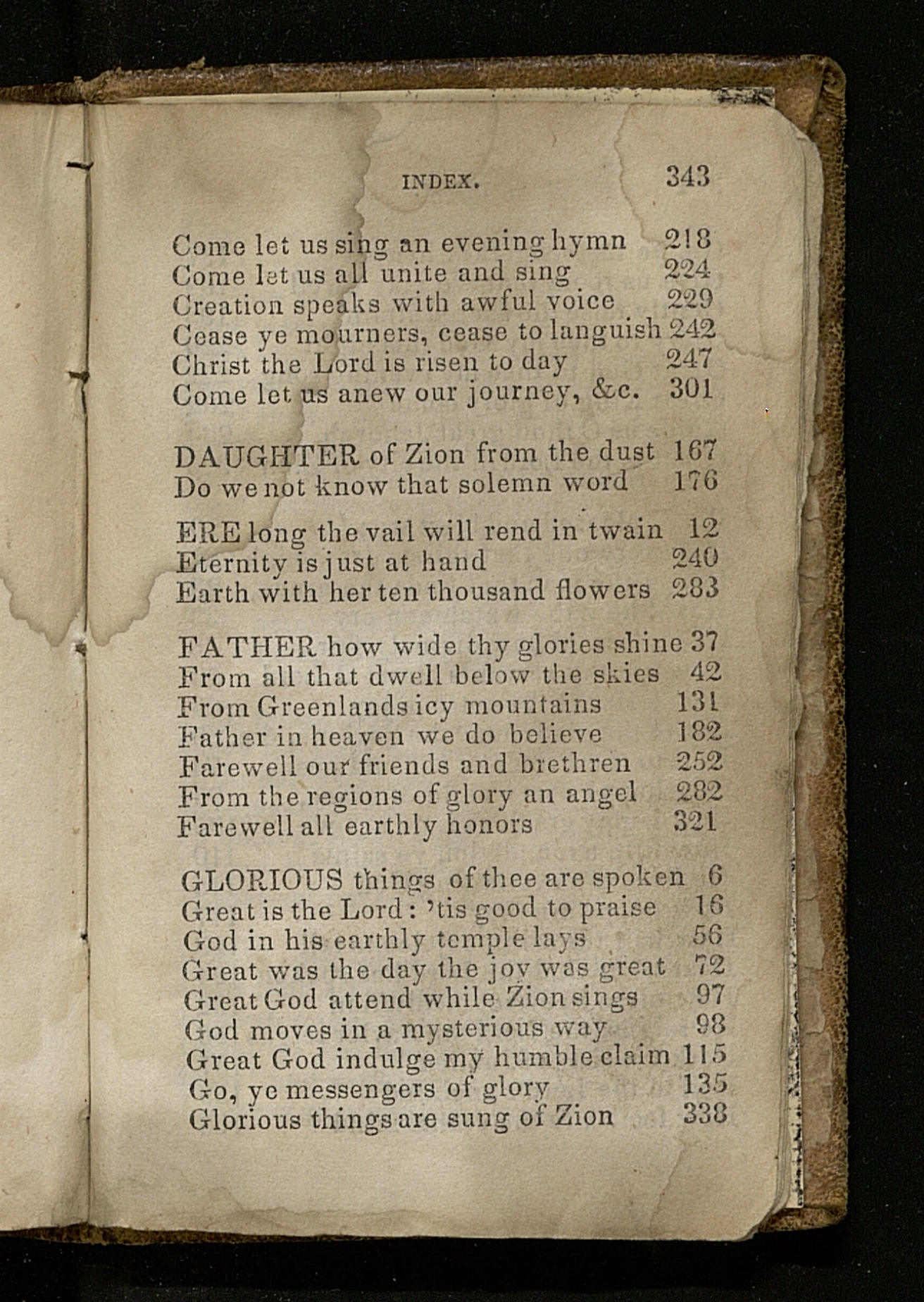 | Glorious things are sung of Zion | 338 |
