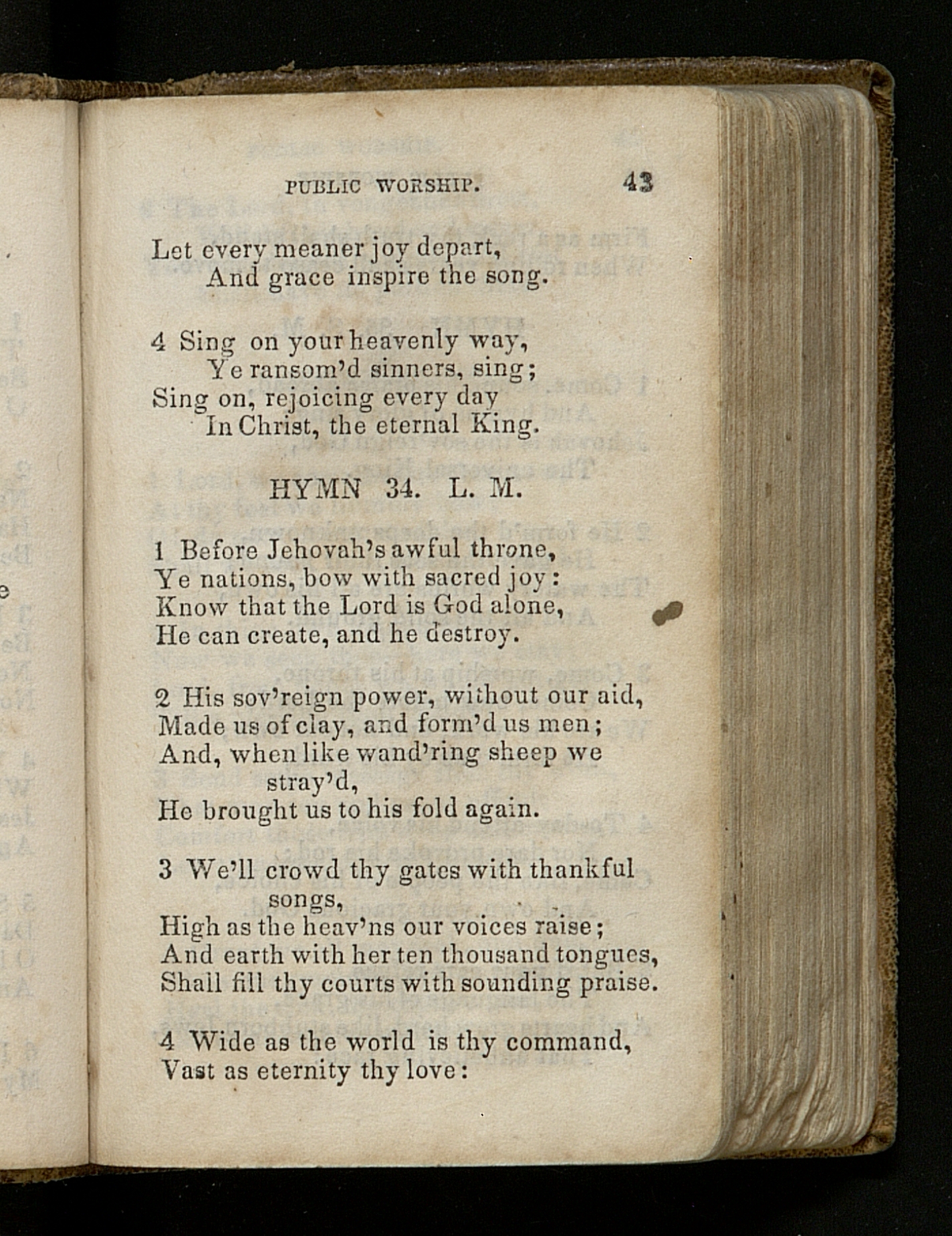 , comp., A Collection of Sacred Hymns for the Church of Jesus Christ of Latter Day Saints, Nauvoo, IL: E. Robinson, 1841, [i]–iv, 5–351. The copy used herein is held at CHL. Includes archival markings.