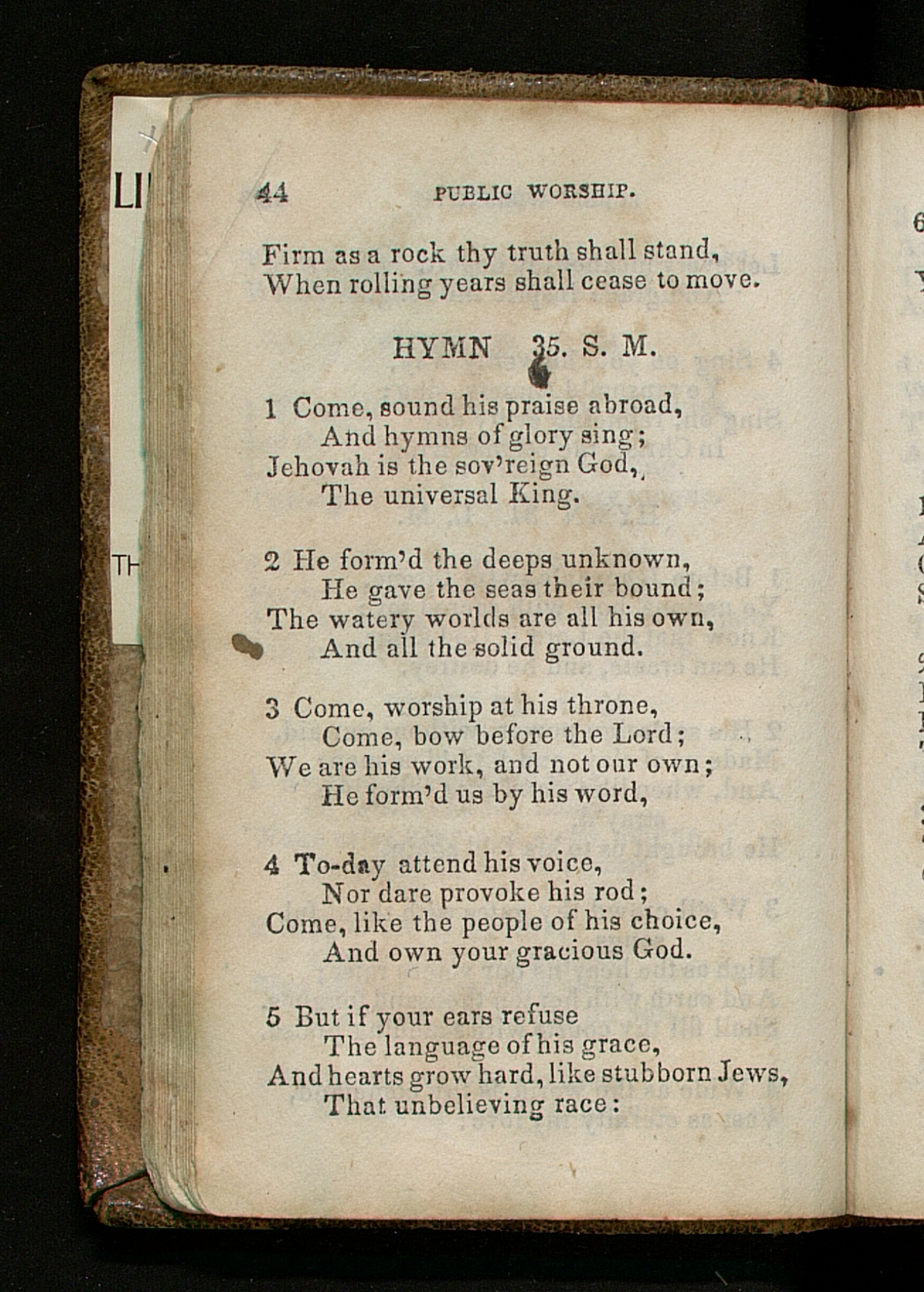 , comp., A Collection of Sacred Hymns for the Church of Jesus Christ of Latter Day Saints, Nauvoo, IL: E. Robinson, 1841, [i]–iv, 5–351. The copy used herein is held at CHL. Includes archival markings.