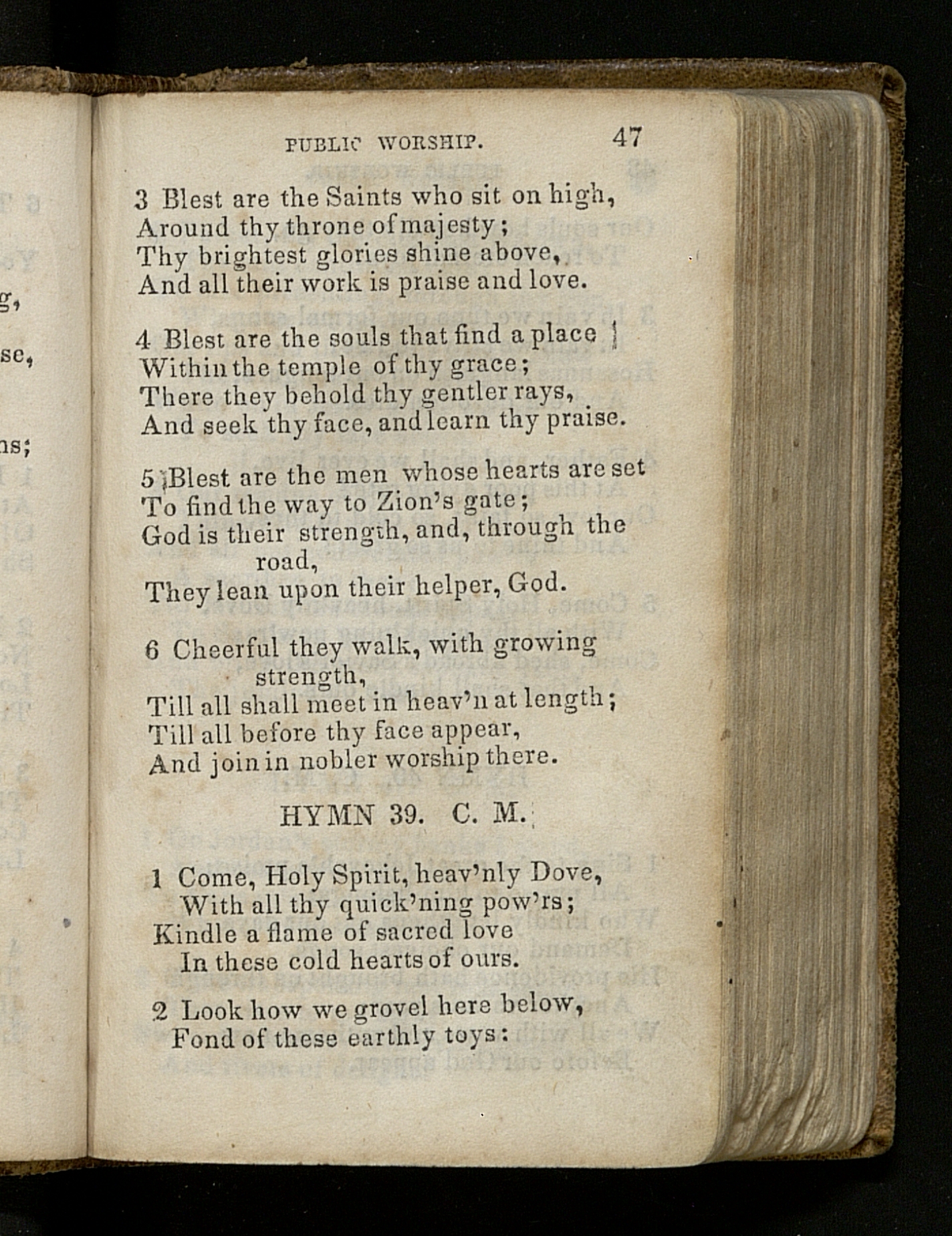 , comp., A Collection of Sacred Hymns for the Church of Jesus Christ of Latter Day Saints, Nauvoo, IL: E. Robinson, 1841, [i]–iv, 5–351. The copy used herein is held at CHL. Includes archival markings.