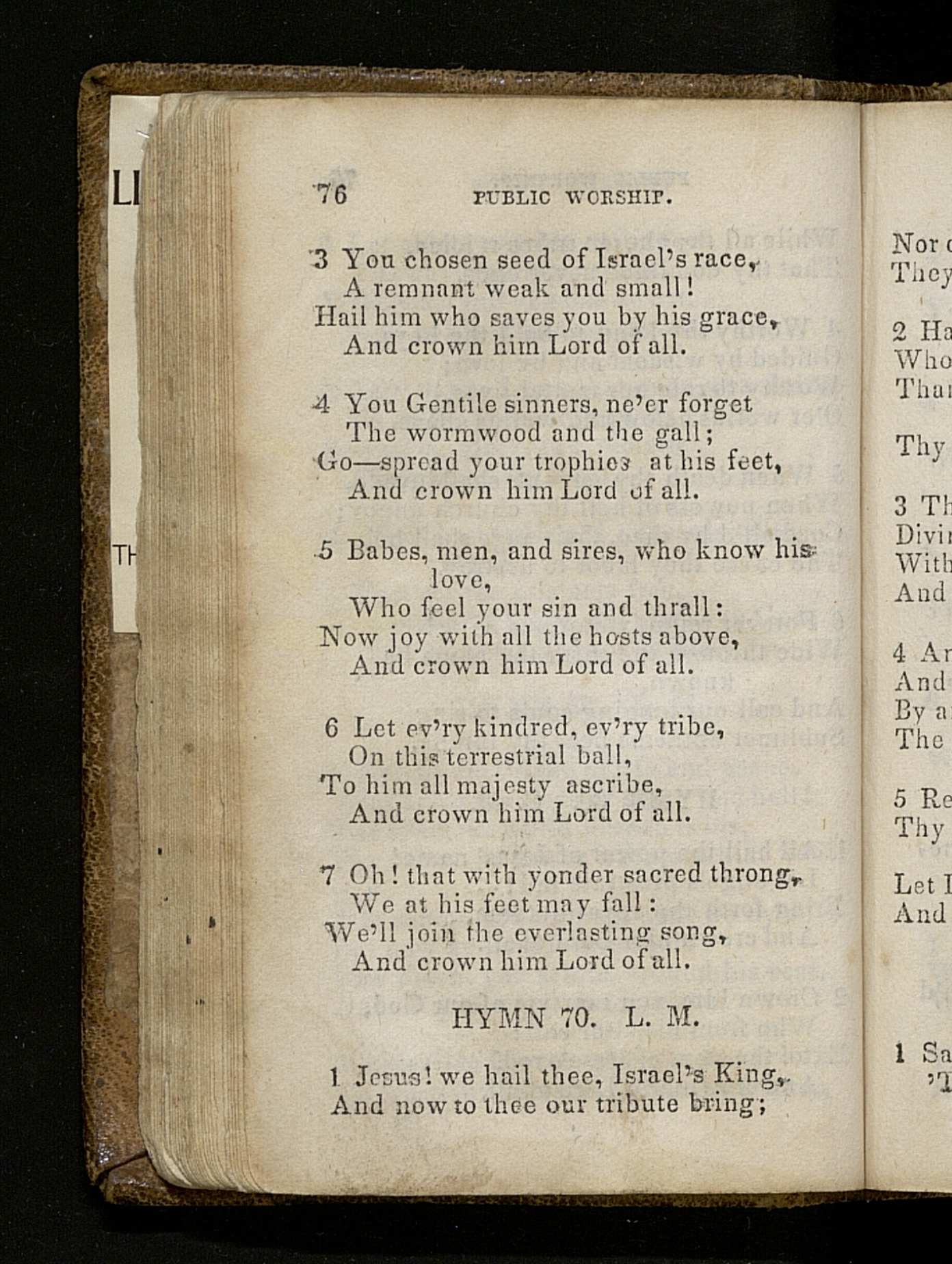 , comp., A Collection of Sacred Hymns for the Church of Jesus Christ of Latter Day Saints, Nauvoo, IL: E. Robinson, 1841, [i]–iv, 5–351. The copy used herein is held at CHL. Includes archival markings.