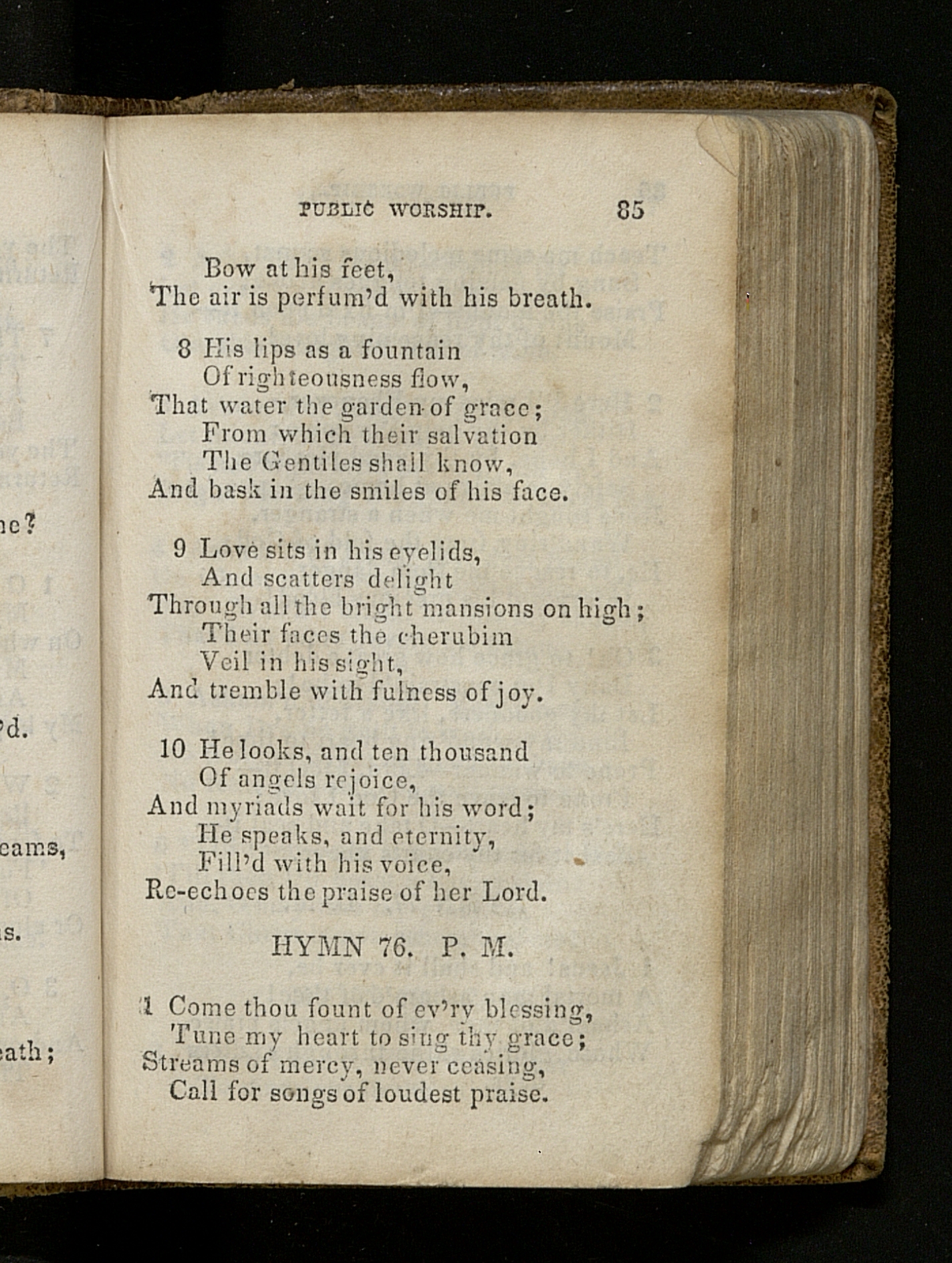 , comp., A Collection of Sacred Hymns for the Church of Jesus Christ of Latter Day Saints, Nauvoo, IL: E. Robinson, 1841, [i]–iv, 5–351. The copy used herein is held at CHL. Includes archival markings.