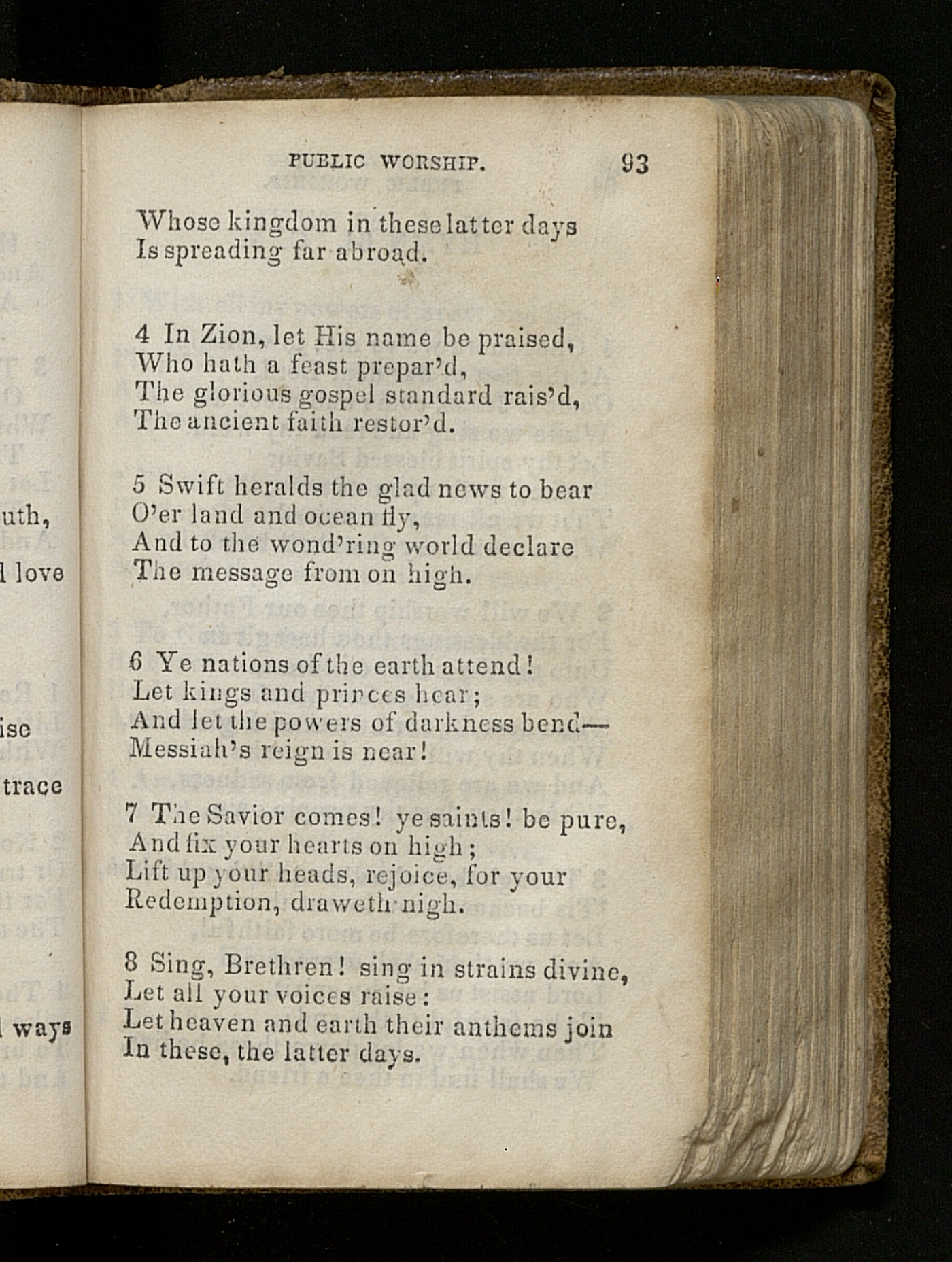 , comp., A Collection of Sacred Hymns for the Church of Jesus Christ of Latter Day Saints, Nauvoo, IL: E. Robinson, 1841, [i]–iv, 5–351. The copy used herein is held at CHL. Includes archival markings.