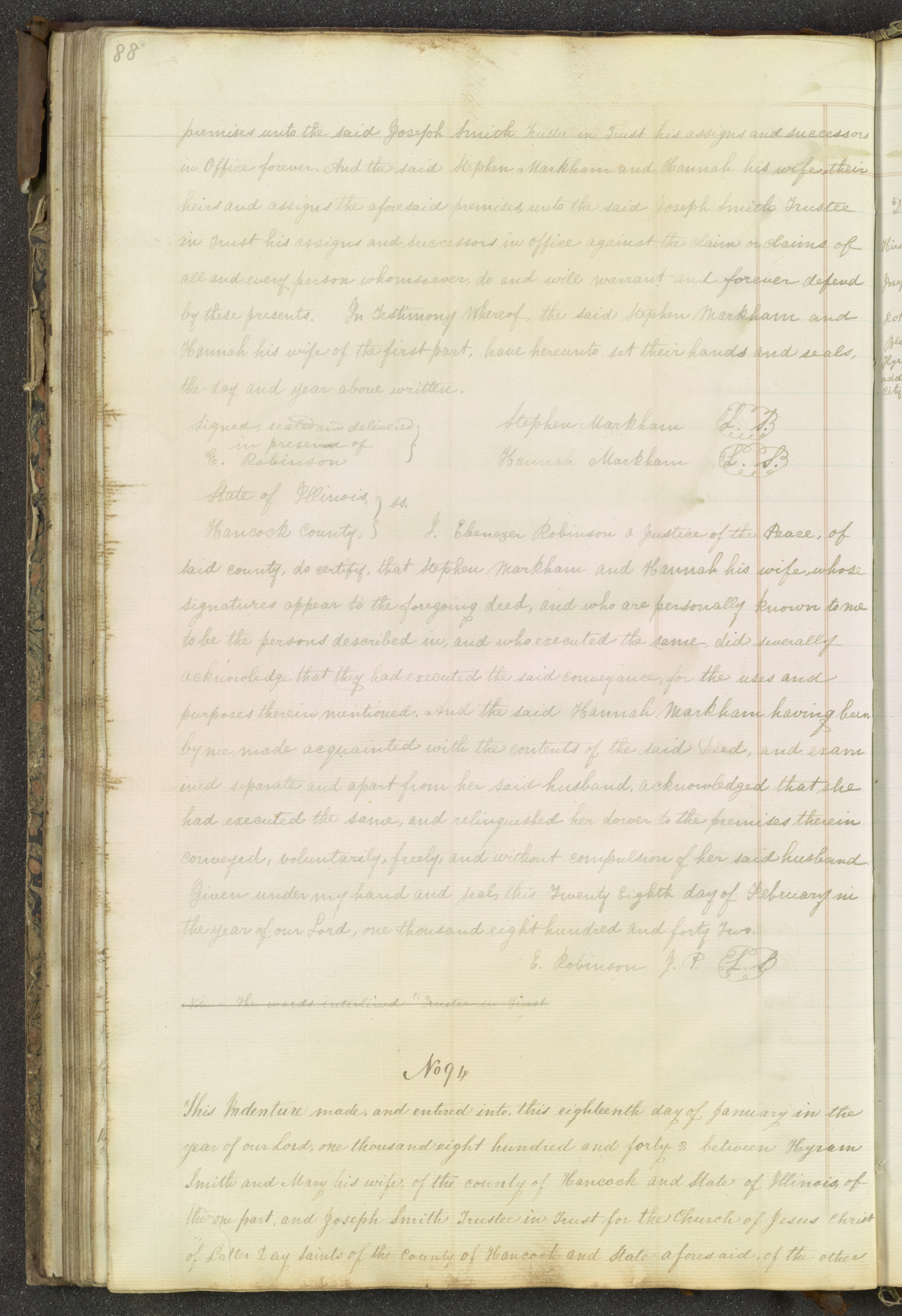 Deed from Hyrum and Mary Fielding Smith, 18 January 1842