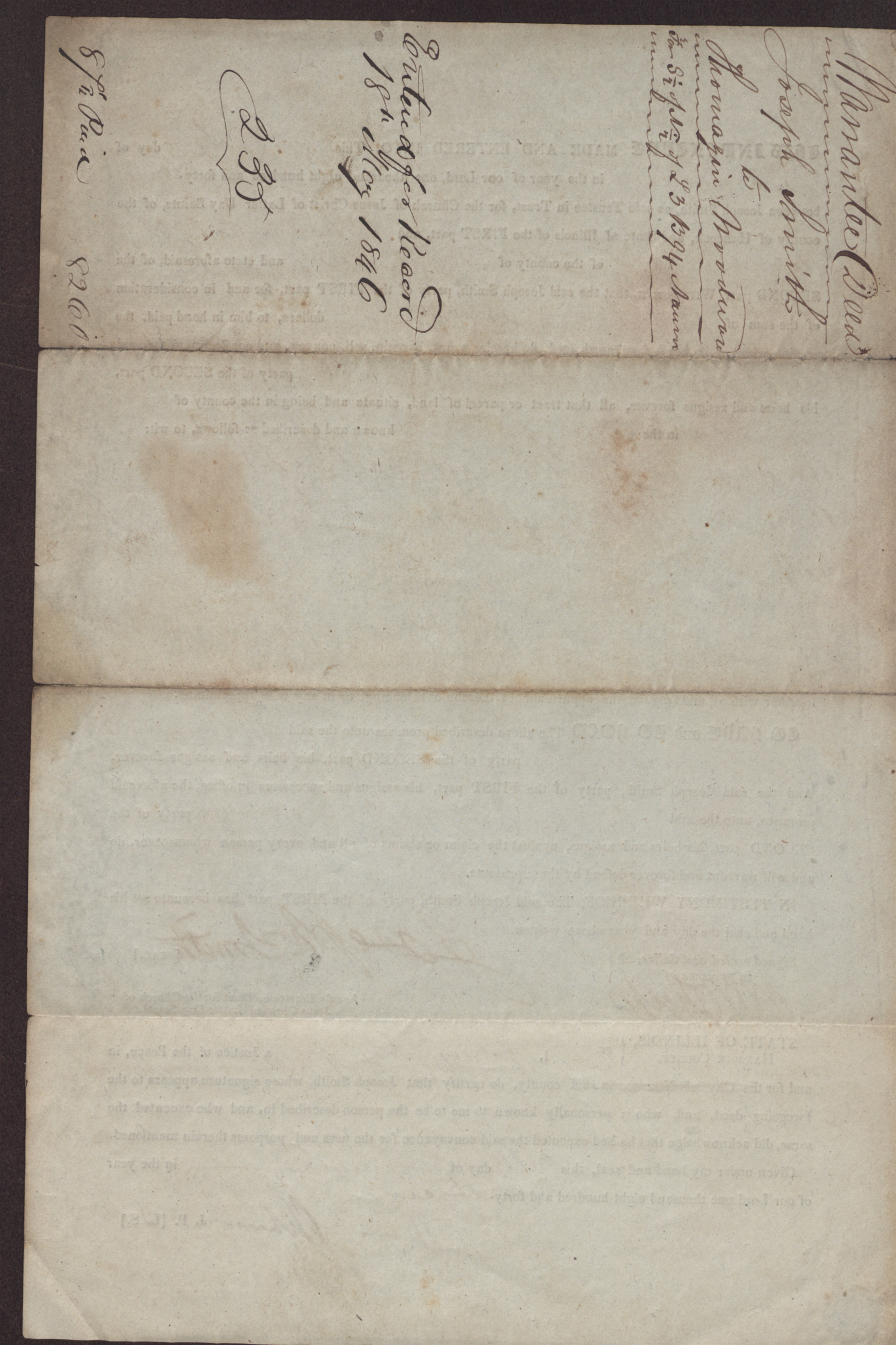 JS as trustee-in-trust for the Church of Jesus Christ of Latter-day Saints, Deed for property in , Hancock Co., IL, to Thomazin Woodward, 7 Dec. 1843; printed form with manuscript additions in handwriting of ; signature of JS; witnessed by and ; certified by , 8 Dec. 1843; certified by , 18 May 1846; docket in handwriting of ; endorsement in handwriting of ; three pages; James Piggott Family Papers, Abraham Lincoln Presidential Library, Springfield, IL.