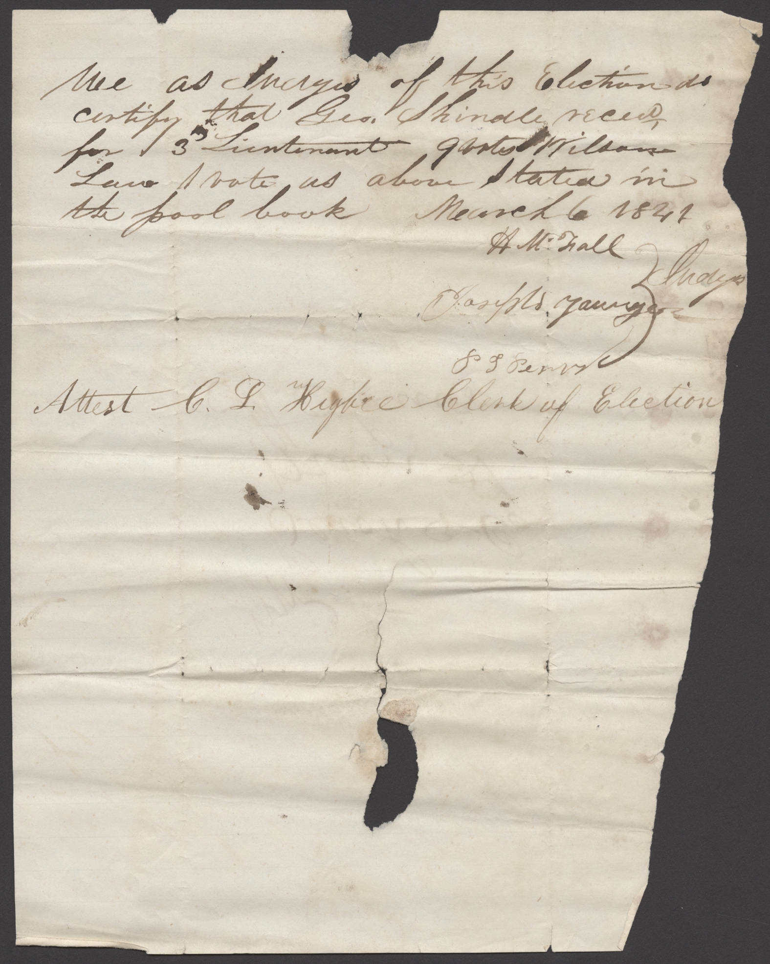 Election Return from Rifle Company, Second Cohort, 6 March 1841