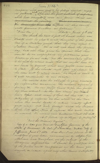 Sidney Gilbert et al., Liberty, MO, to Daniel Dunklin, 5 June 1834, copy, William W. Phelps, Collection of Missouri Documents, CHL.