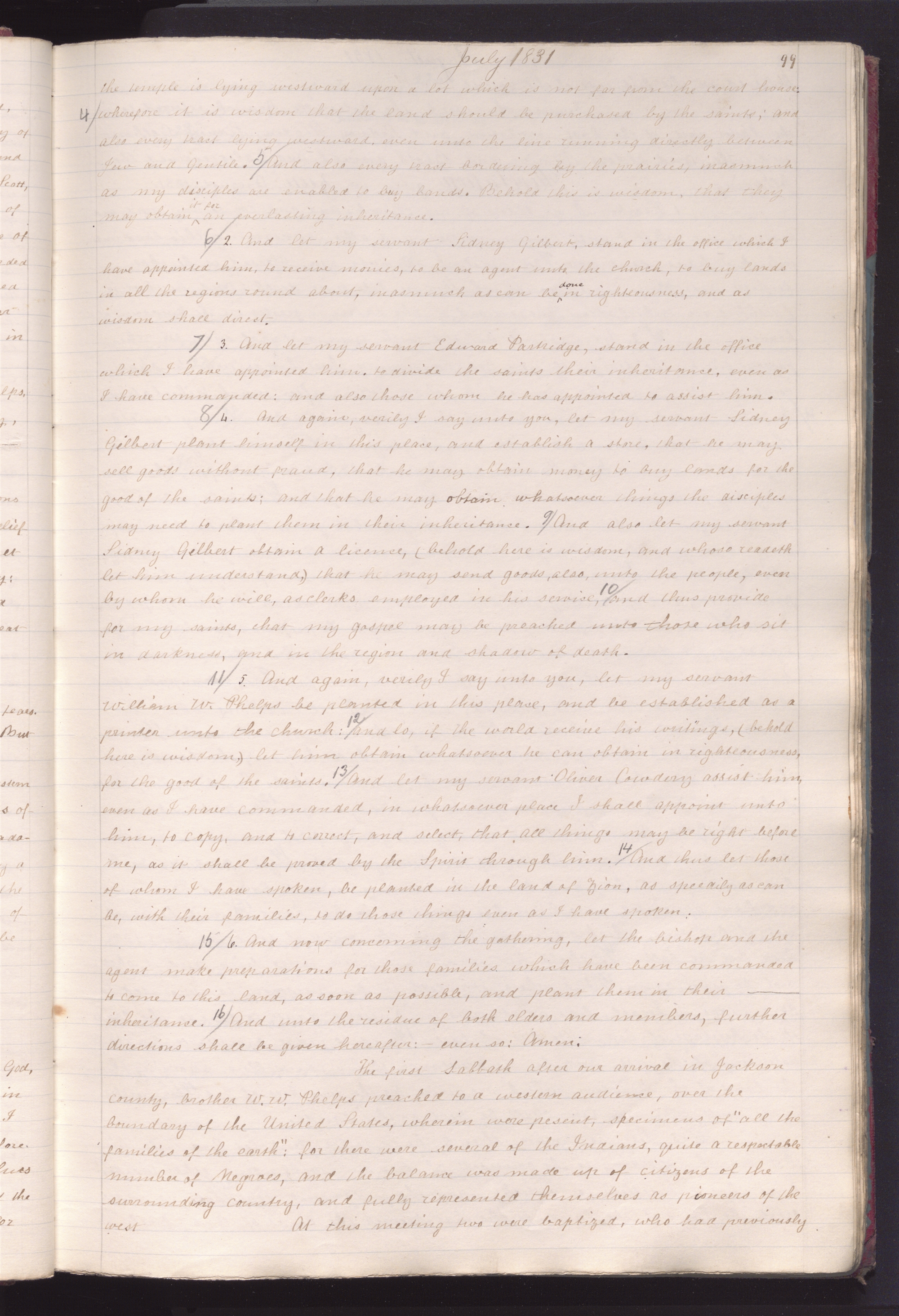 JS, History, 1838–1856, vol. A-2, created 4 Apr.–28 Nov. 1845 and 3–7 Aug. 1858; handwriting of , , , and ; 365 pages, plus seven pages of addenda; CHL. This is a copy of the first volume of a six-volume manuscript history of the church (JS History, 1838–1856, vol. A-1), and covers the period from 23 Dec. 1805 to 30 Aug. 1834. The copy also comprises four other volumes, labeled B-2, C-2, D-2, and E-2, and continues through 19 July 1843. The copy was discontinued 6 Aug. 1856 “by the advice of President ” (JS History, 1838–1856, vol. E-2, p. 83).