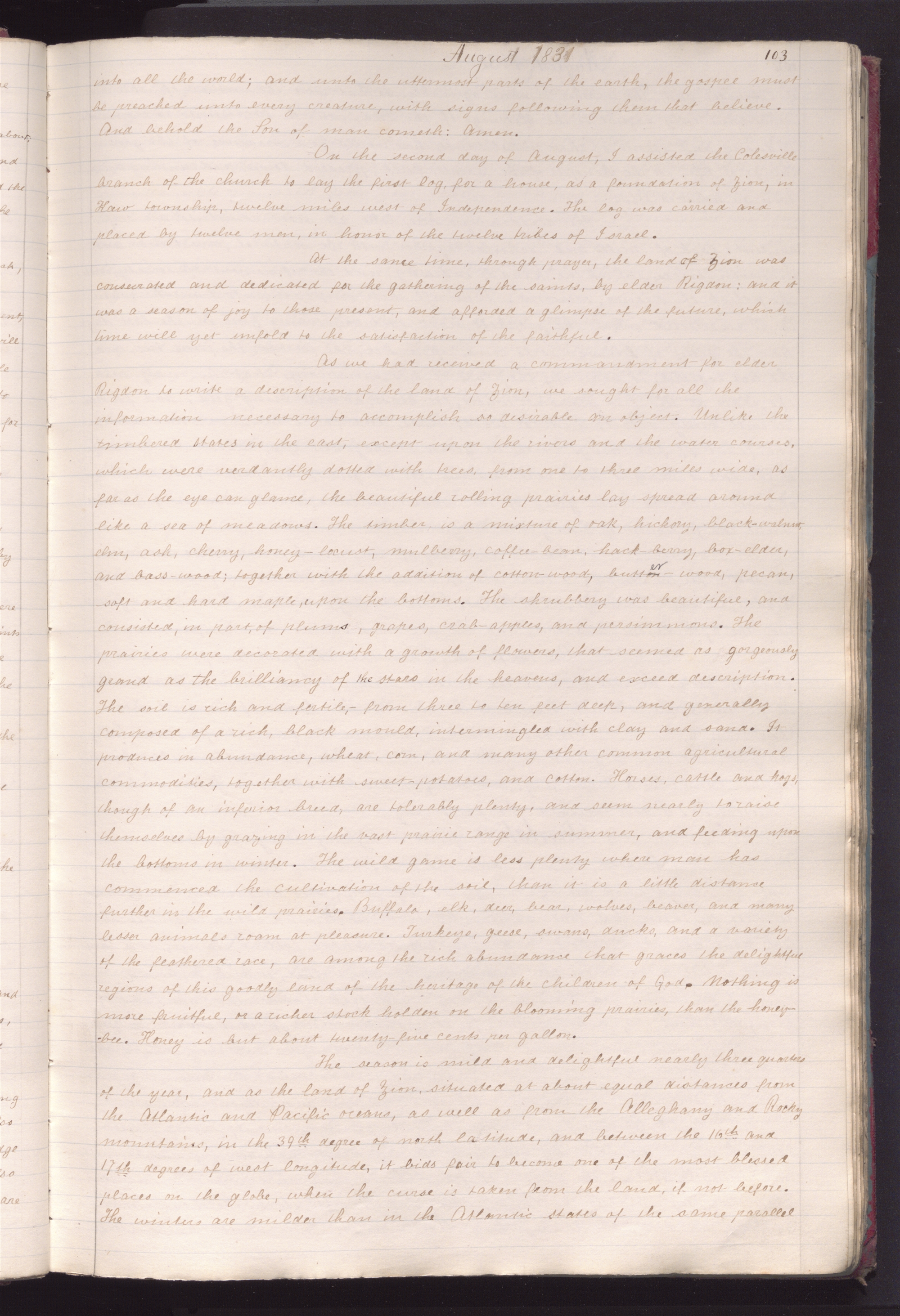 JS, History, 1838–1856, vol. A-2, created 4 Apr.–28 Nov. 1845 and 3–7 Aug. 1858; handwriting of , , , and ; 365 pages, plus seven pages of addenda; CHL. This is a copy of the first volume of a six-volume manuscript history of the church (JS History, 1838–1856, vol. A-1), and covers the period from 23 Dec. 1805 to 30 Aug. 1834. The copy also comprises four other volumes, labeled B-2, C-2, D-2, and E-2, and continues through 19 July 1843. The copy was discontinued 6 Aug. 1856 “by the advice of President ” (JS History, 1838–1856, vol. E-2, p. 83).
