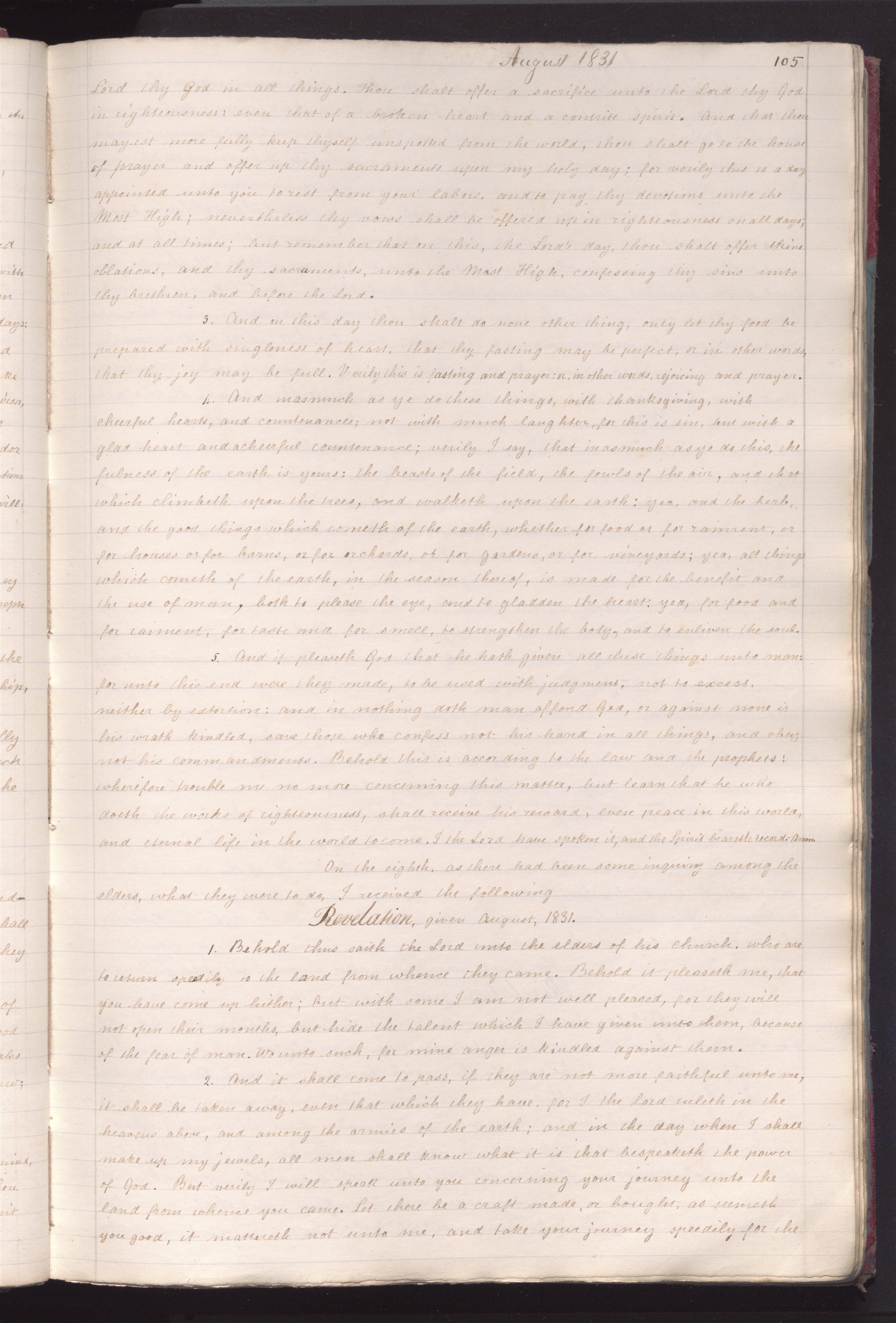 JS, History, 1838–1856, vol. A-2, created 4 Apr.–28 Nov. 1845 and 3–7 Aug. 1858; handwriting of , , , and ; 365 pages, plus seven pages of addenda; CHL. This is a copy of the first volume of a six-volume manuscript history of the church (JS History, 1838–1856, vol. A-1), and covers the period from 23 Dec. 1805 to 30 Aug. 1834. The copy also comprises four other volumes, labeled B-2, C-2, D-2, and E-2, and continues through 19 July 1843. The copy was discontinued 6 Aug. 1856 “by the advice of President ” (JS History, 1838–1856, vol. E-2, p. 83).