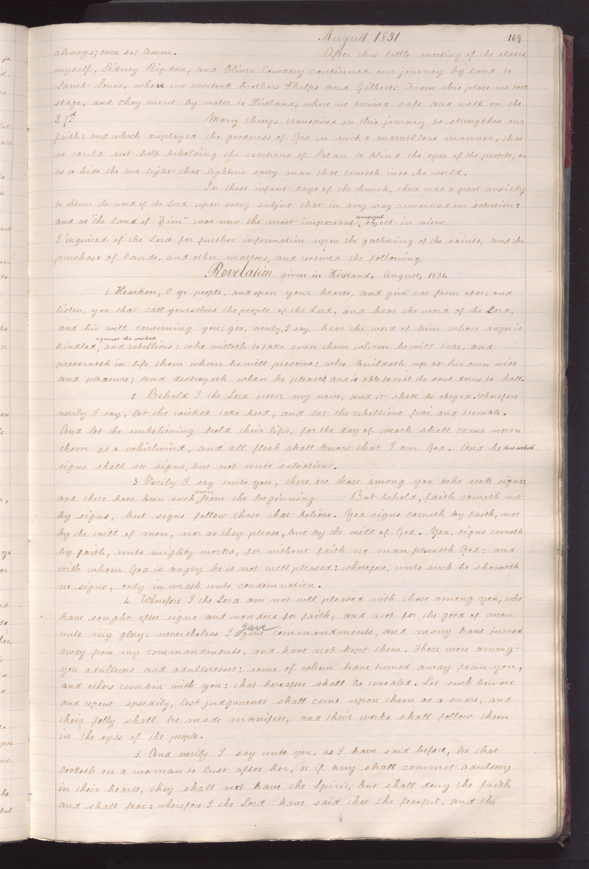 JS, History, 1838–1856, vol. A-2, created 4 Apr.–28 Nov. 1845 and 3–7 Aug. 1858; handwriting of , , , and ; 365 pages, plus seven pages of addenda; CHL. This is a copy of the first volume of a six-volume manuscript history of the church (JS History, 1838–1856, vol. A-1), and covers the period from 23 Dec. 1805 to 30 Aug. 1834. The copy also comprises four other volumes, labeled B-2, C-2, D-2, and E-2, and continues through 19 July 1843. The copy was discontinued 6 Aug. 1856 “by the advice of President ” (JS History, 1838–1856, vol. E-2, p. 83).
