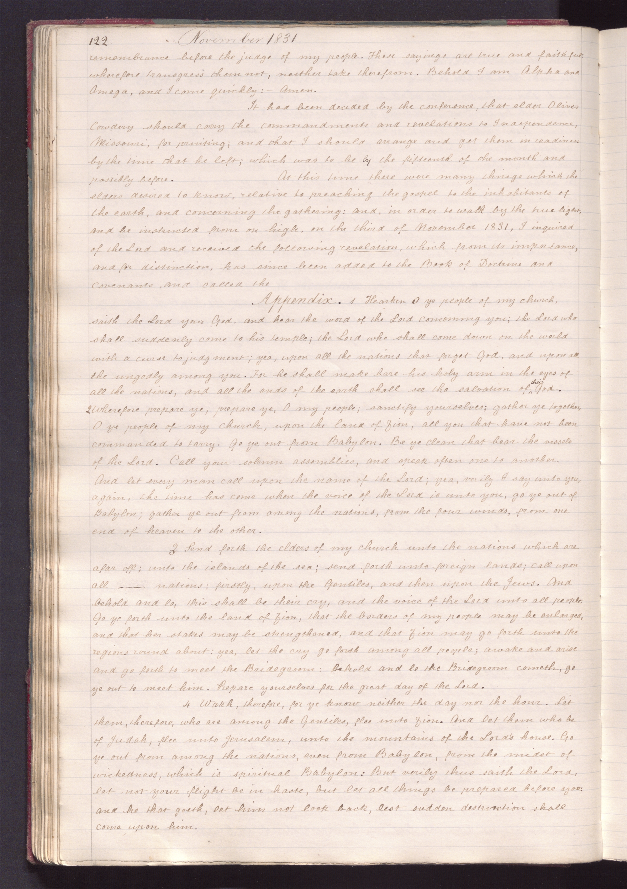 JS, History, 1838–1856, vol. A-2, created 4 Apr.–28 Nov. 1845 and 3–7 Aug. 1858; handwriting of , , , and ; 365 pages, plus seven pages of addenda; CHL. This is a copy of the first volume of a six-volume manuscript history of the church (JS History, 1838–1856, vol. A-1), and covers the period from 23 Dec. 1805 to 30 Aug. 1834. The copy also comprises four other volumes, labeled B-2, C-2, D-2, and E-2, and continues through 19 July 1843. The copy was discontinued 6 Aug. 1856 “by the advice of President ” (JS History, 1838–1856, vol. E-2, p. 83).
