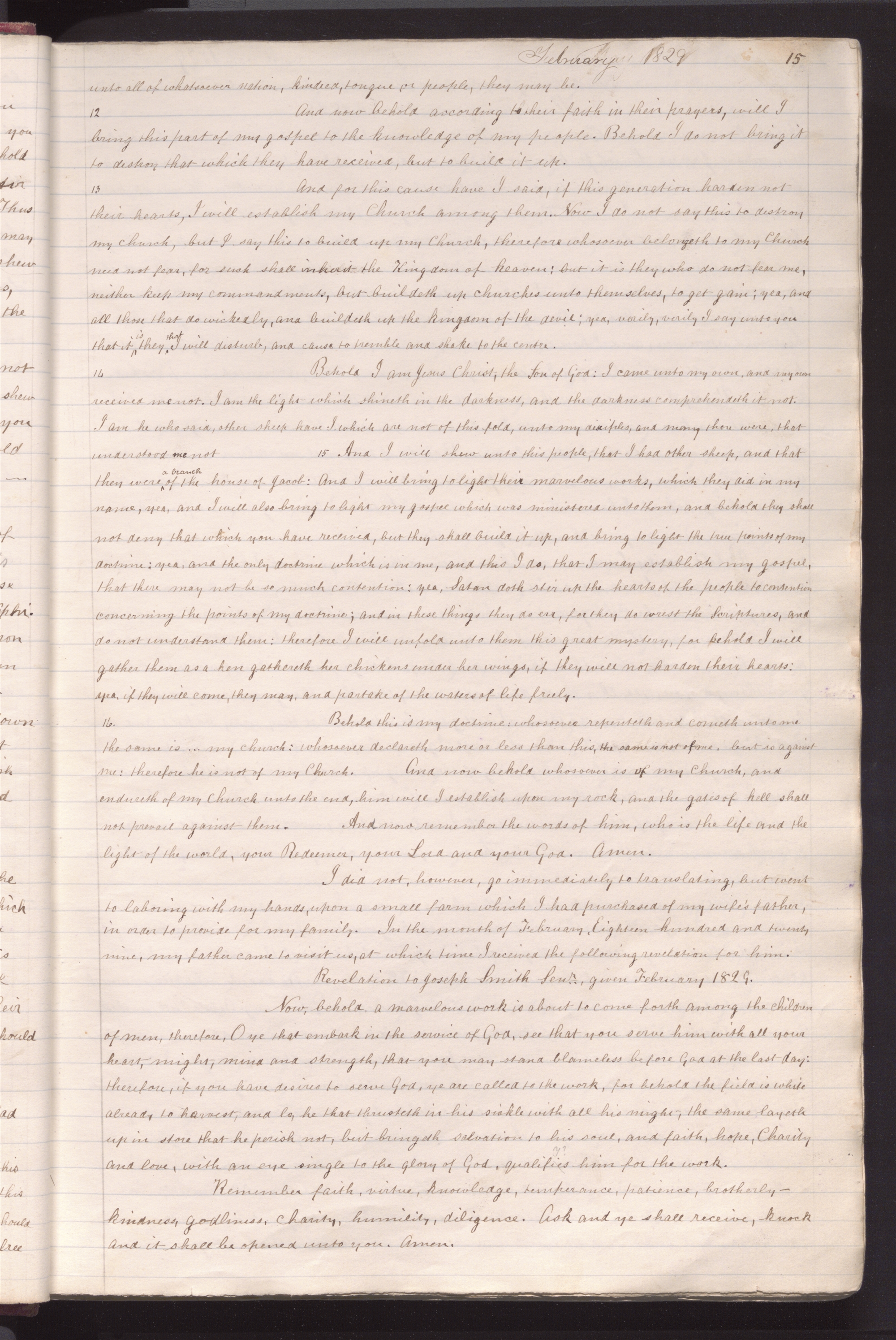 JS, History, 1838–1856, vol. A-2, created 4 Apr.–28 Nov. 1845 and 3–7 Aug. 1858; handwriting of , , , and ; 365 pages, plus seven pages of addenda; CHL. This is a copy of the first volume of a six-volume manuscript history of the church (JS History, 1838–1856, vol. A-1), and covers the period from 23 Dec. 1805 to 30 Aug. 1834. The copy also comprises four other volumes, labeled B-2, C-2, D-2, and E-2, and continues through 19 July 1843. The copy was discontinued 6 Aug. 1856 “by the advice of President ” (JS History, 1838–1856, vol. E-2, p. 83).