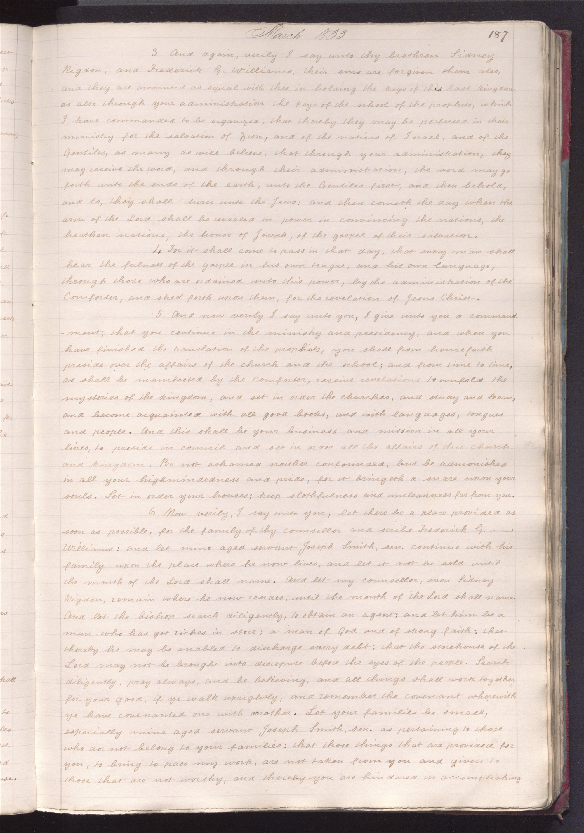 JS, History, 1838–1856, vol. A-2, created 4 Apr.–28 Nov. 1845 and 3–7 Aug. 1858; handwriting of , , , and ; 365 pages, plus seven pages of addenda; CHL. This is a copy of the first volume of a six-volume manuscript history of the church (JS History, 1838–1856, vol. A-1), and covers the period from 23 Dec. 1805 to 30 Aug. 1834. The copy also comprises four other volumes, labeled B-2, C-2, D-2, and E-2, and continues through 19 July 1843. The copy was discontinued 6 Aug. 1856 “by the advice of President ” (JS History, 1838–1856, vol. E-2, p. 83).